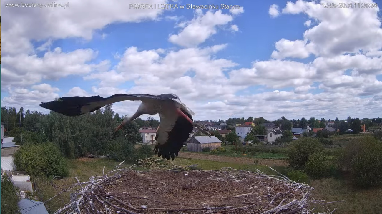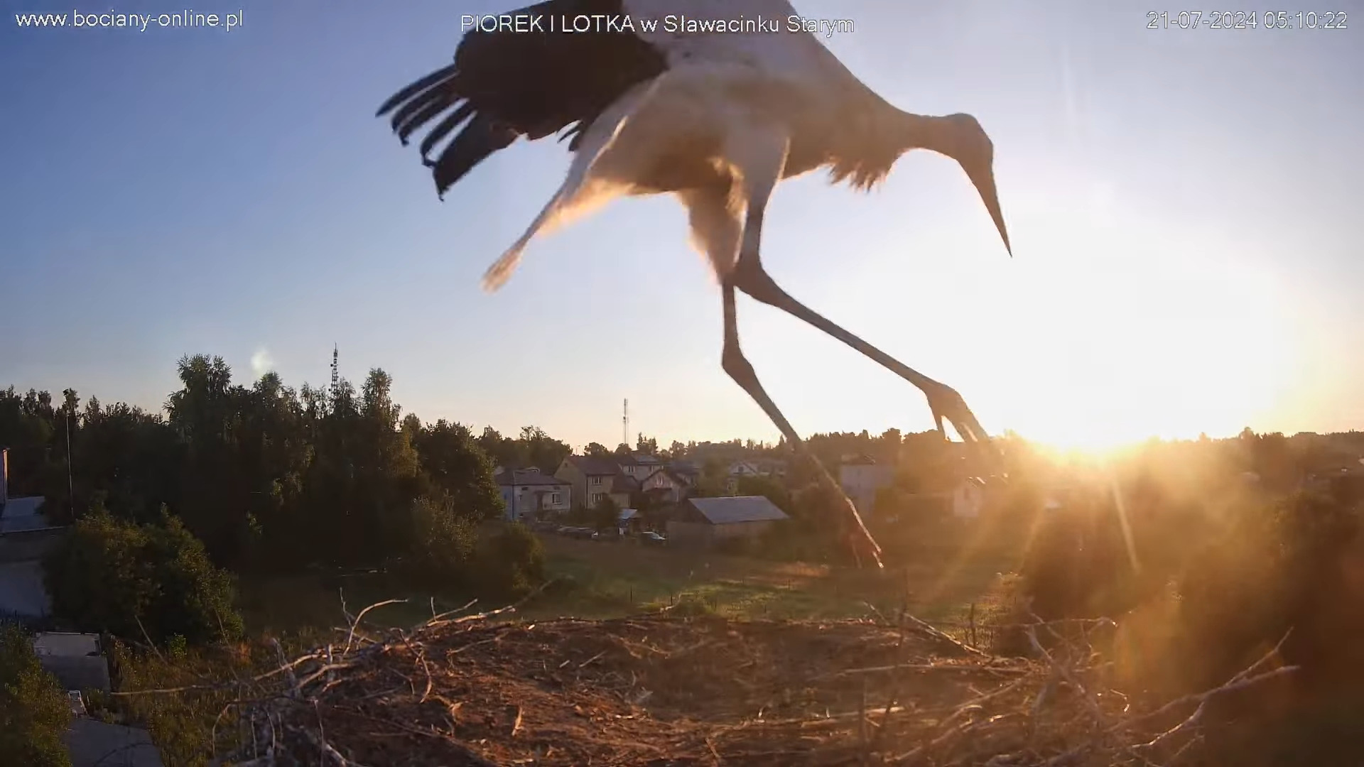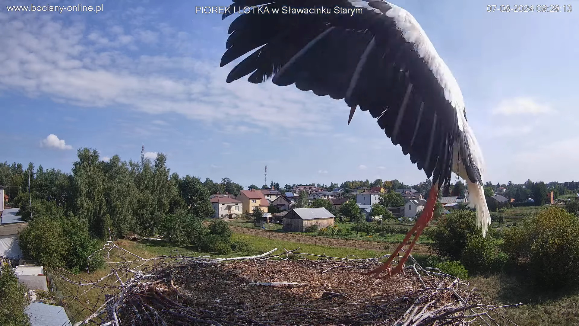 Po nocy spędzonej na maszcie Piórek melduje się w gnieździe