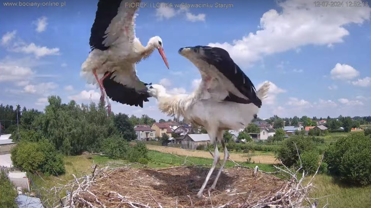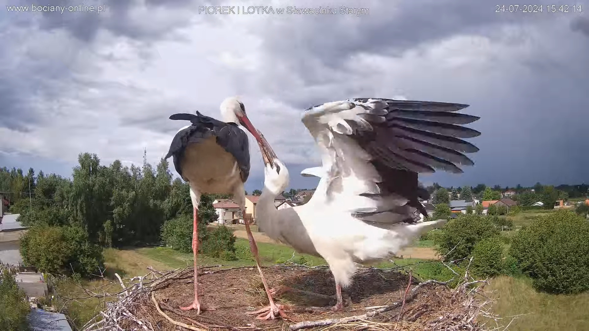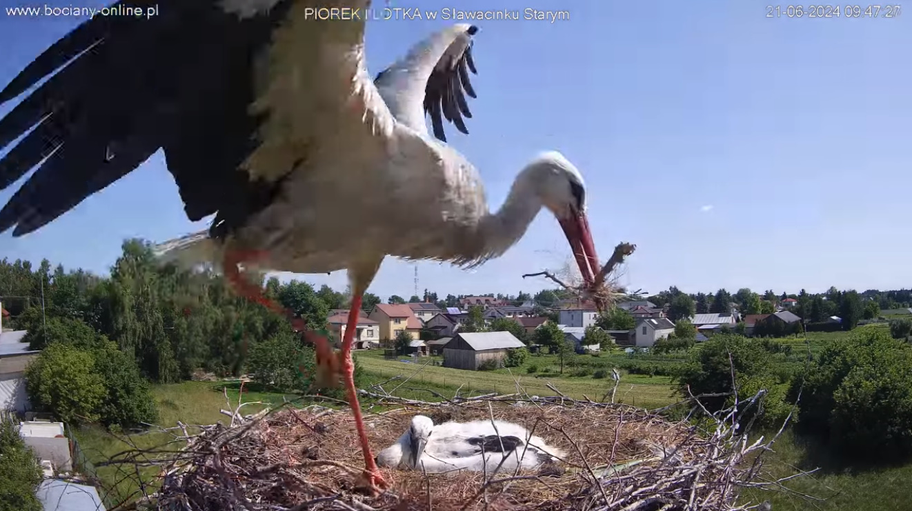 Po nocy spędzonej na maszcie Piórek melduje się w gnieździe