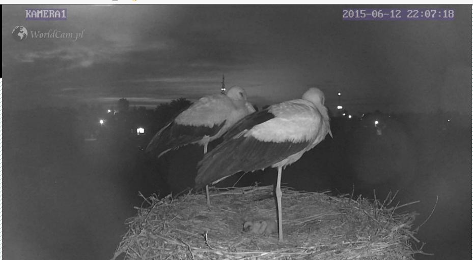 Dzisiaj od godziny 11,00 nasza bociania rodzina to 2 + 2. Piórek wyeliminował najmłodsze pisklę. Nie zrobił tego z brutalności, lecz kierował się instynktem. Może mały był chory ? Nie poznamy odpowiedzi na to pytanie.