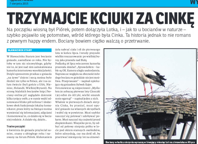 Nasza bociania rodzina doczekała się artykułu o sobie :)