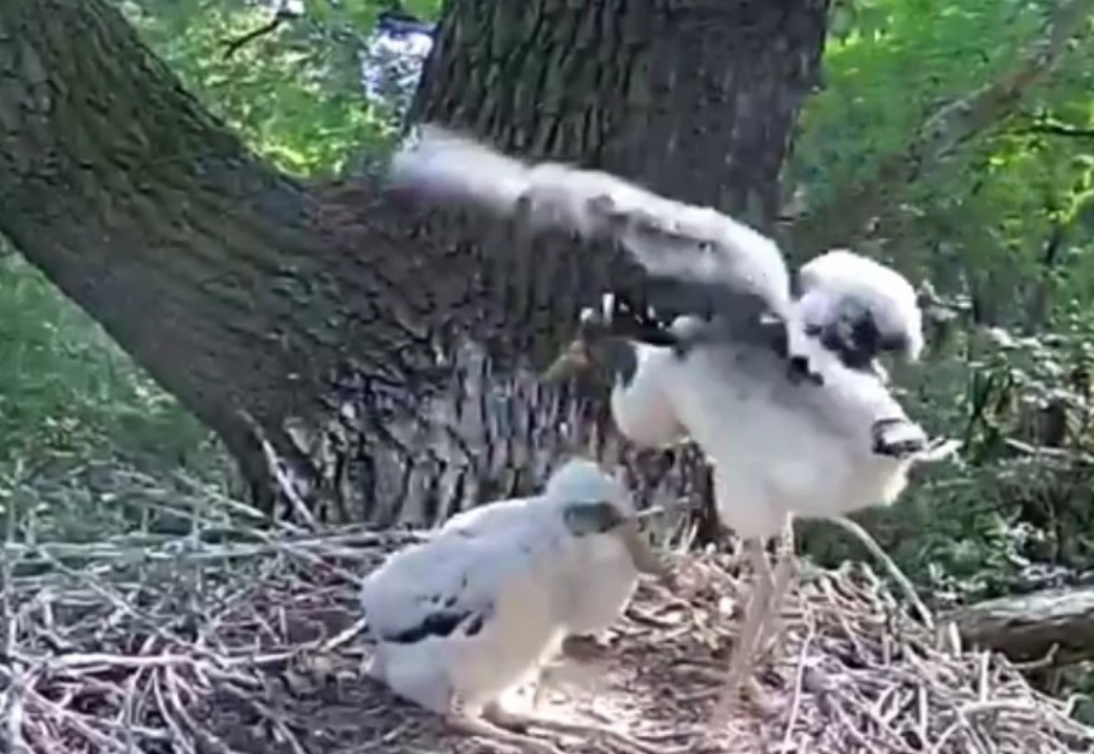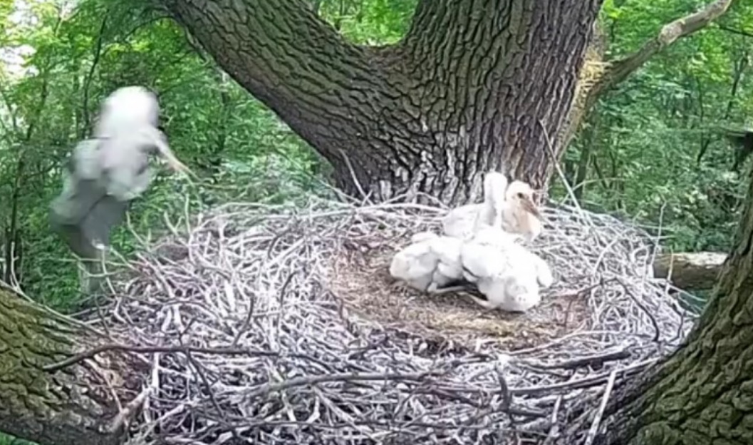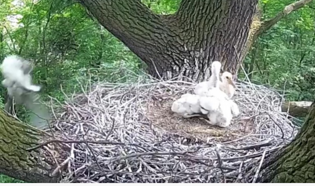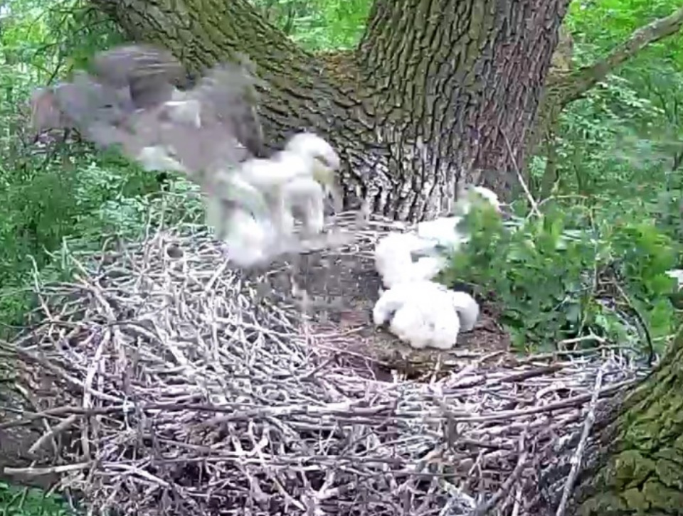 Działo się to na oczach rodzica, który sekundę po ataku był już w gnieździe. Miejmy nadzieję, że to zdarzenie spowoduje wzmocnienie ochrony młodych. Teraz będą mieli tylko trzy dzioby do wykarmienia i może nie będą zostawiały maluchów samych w gnieździe ani na chwilę.