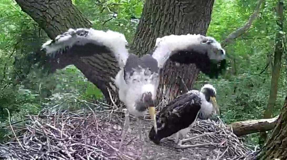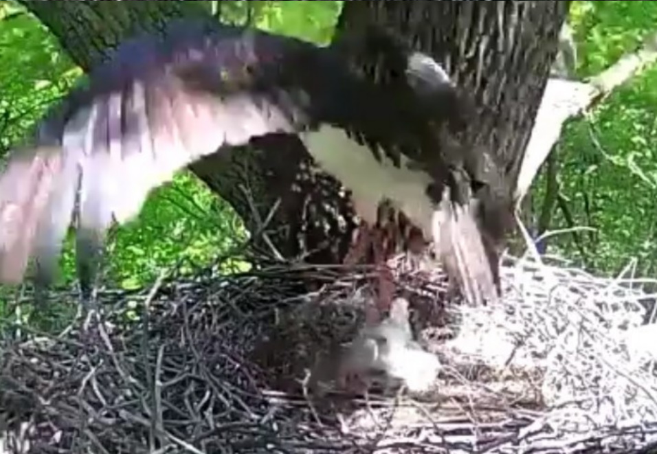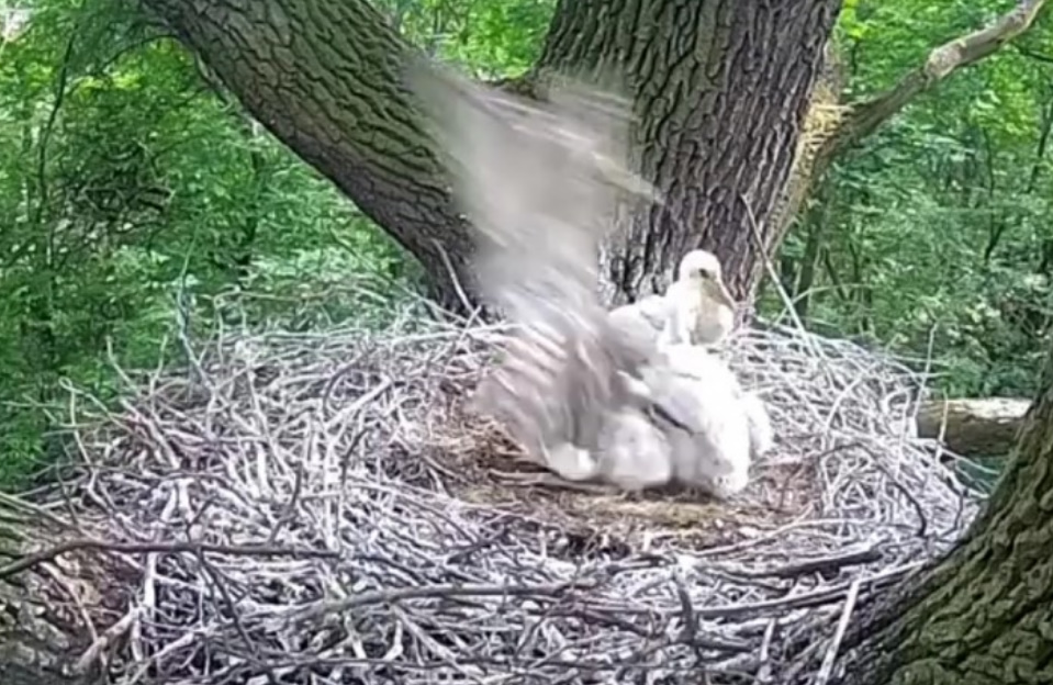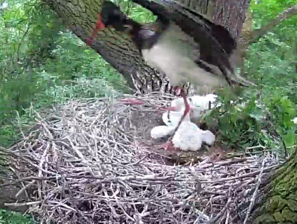 Działo się to na oczach rodzica, który sekundę po ataku był już w gnieździe. Miejmy nadzieję, że to zdarzenie spowoduje wzmocnienie ochrony młodych. Teraz będą mieli tylko trzy dzioby do wykarmienia i może nie będą zostawiały maluchów samych w gnieździe ani na chwilę.