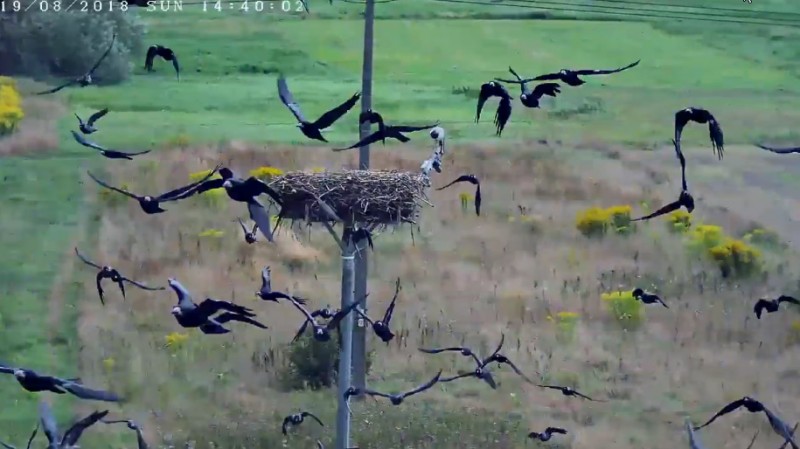 Młody z dnia na dzień wybiera się na coraz dłuższe wypady poza gniazdo :) Widać czas rozstania nadchodzi wielkimi posuwistymi machnięciami bocianich skrzydeł :D