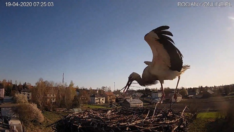 11 kwietnia - g. 07,40 pierwszy w sezonie bocian w gnieździe - turysta