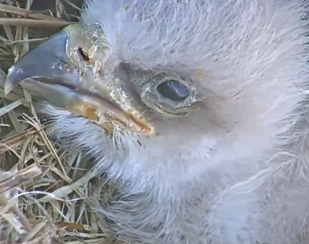" Młode mają się bardzo dobrze , mają wielki apetyt. Na poprzednich zdjęciach, które publikowaliśmy, ich oczy wyglądały znacznie lepiej, ponieważ staraliśmy się utrzymać je w czystości i sterylności. Nadal niestety oczy piskląt są zainfekowane. Bieliki otrzymują antybiotyki trzy razy dziennie w kroplach do oczu . Zaczęto dziś iniekcje z antybiotyku aby pomóc w walce z infekcją.