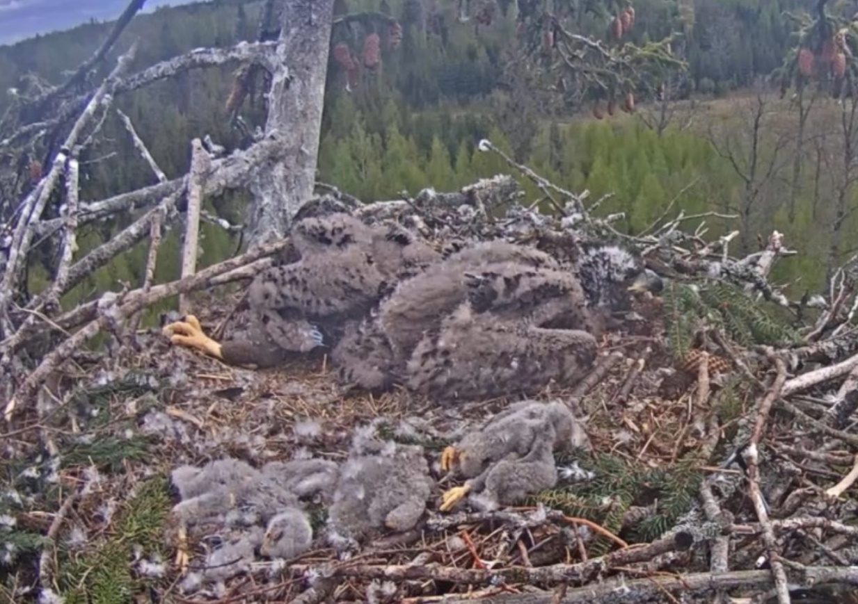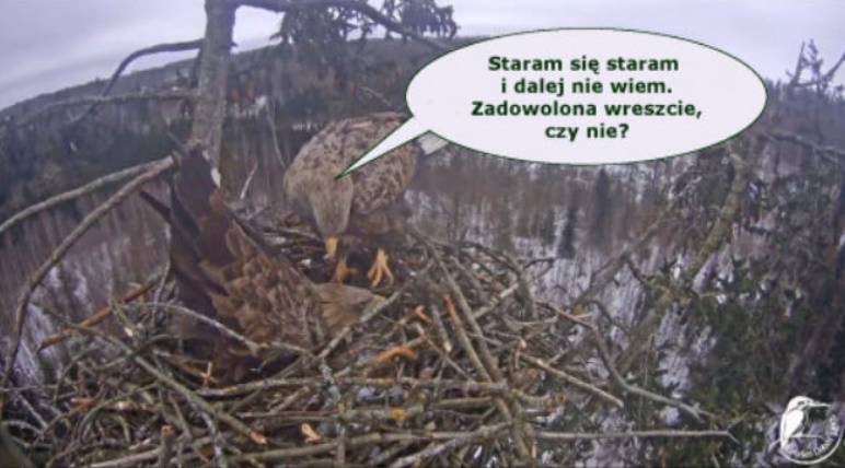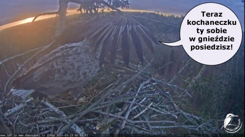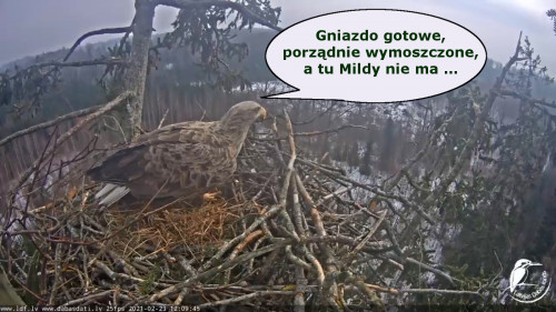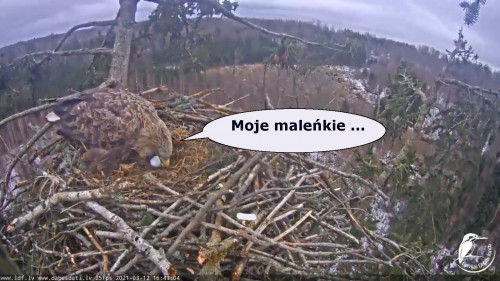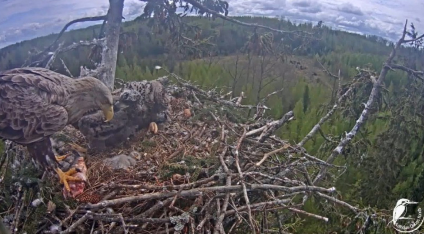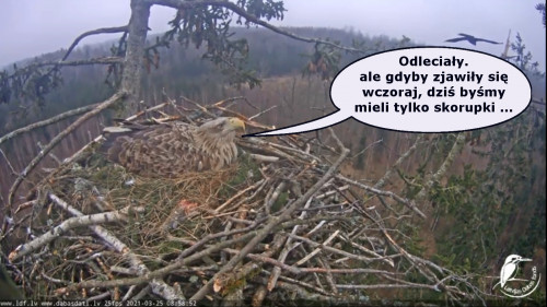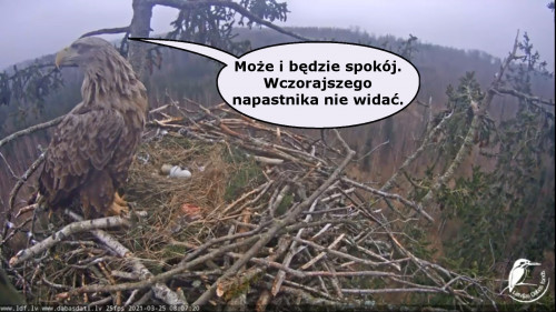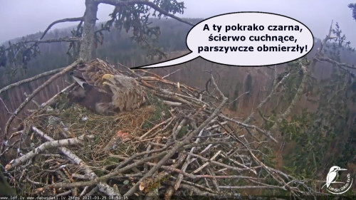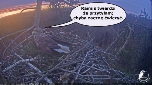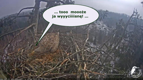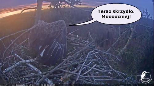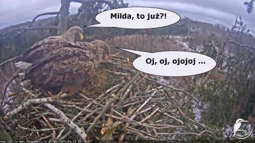 Jeszcze wczoraj mieliśmy nadzieję na odchowanie całej trójki. Tercek jakby odważniejszy się zrobił, sprytniejszy. Nie widzimy każdego karmienia, często Milda zasłania sobą ten widok. Ale sądząc po blojdzie Tercka było jakby lepiej.