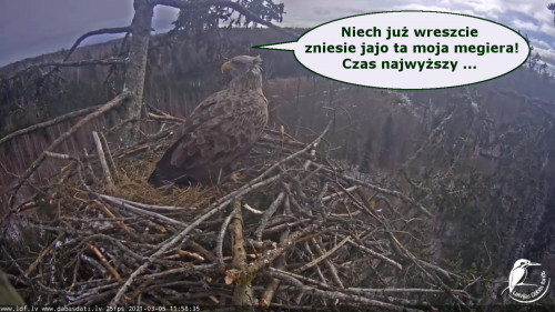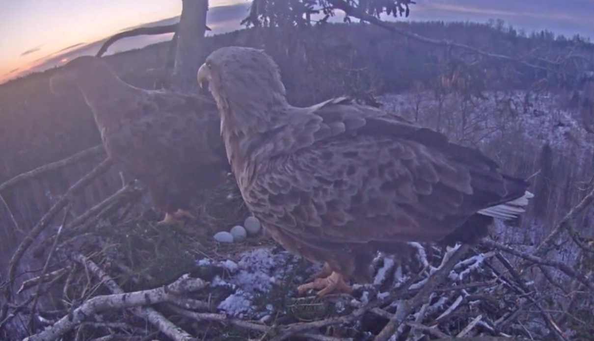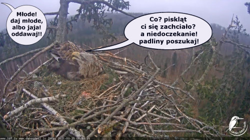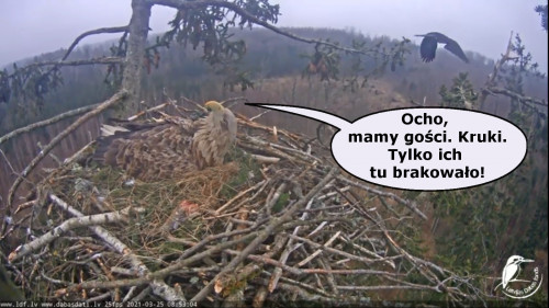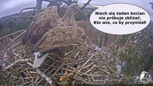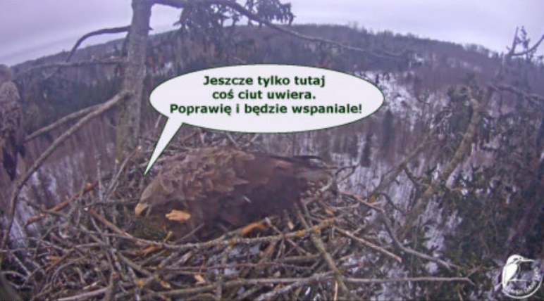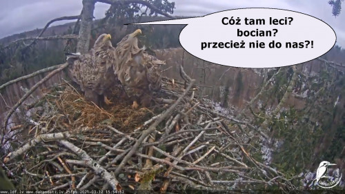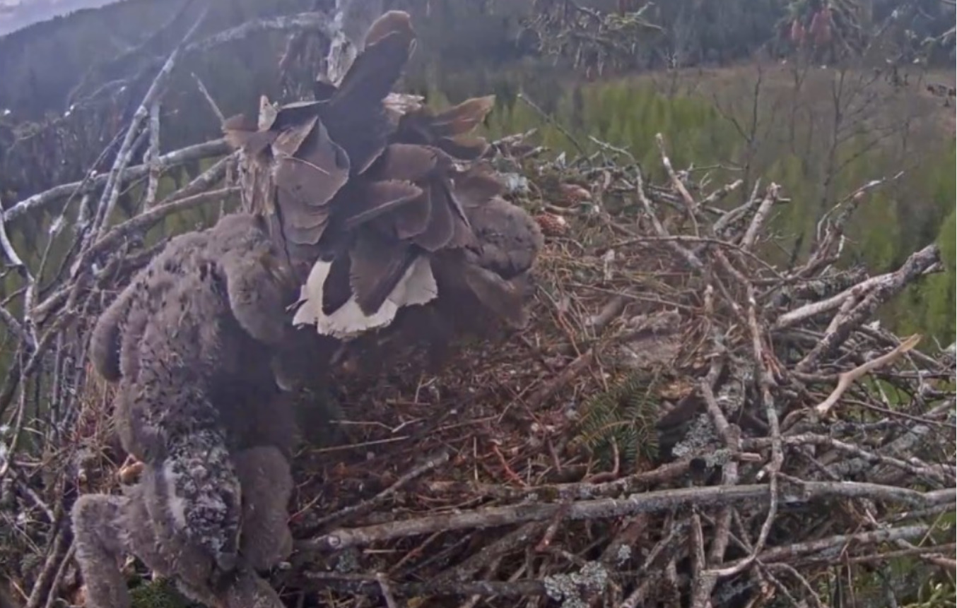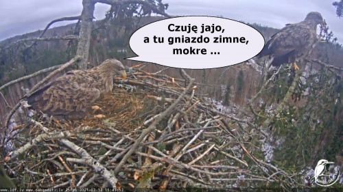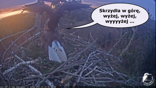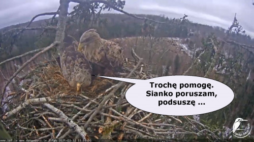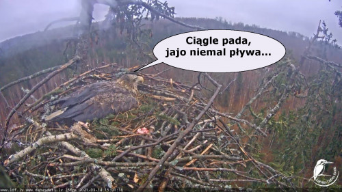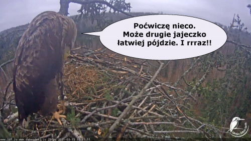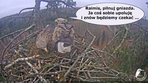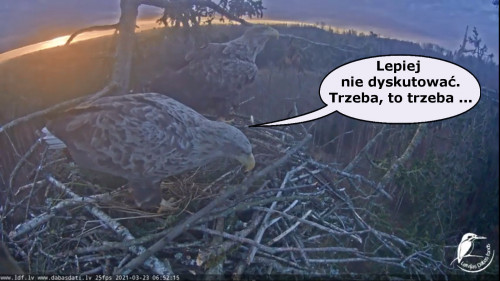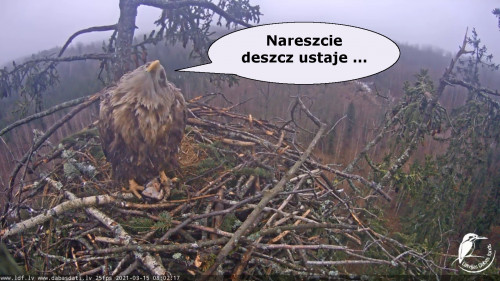 Jeszcze wczoraj mieliśmy nadzieję na odchowanie całej trójki. Tercek jakby odważniejszy się zrobił, sprytniejszy. Nie widzimy każdego karmienia, często Milda zasłania sobą ten widok. Ale sądząc po blojdzie Tercka było jakby lepiej.
