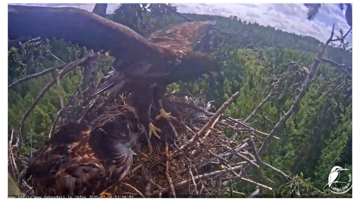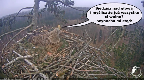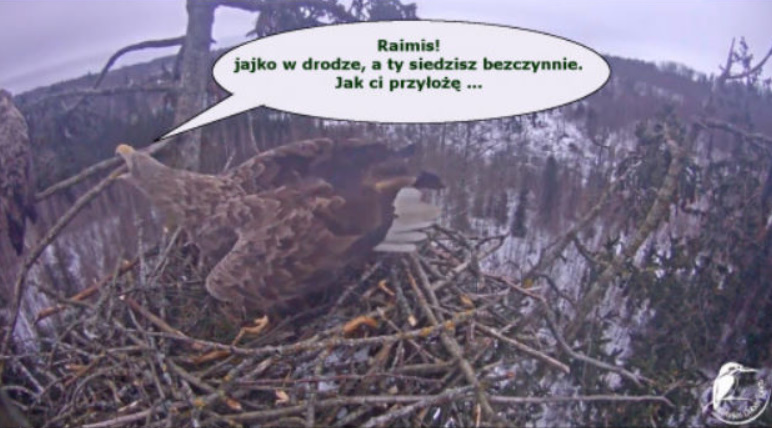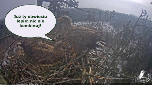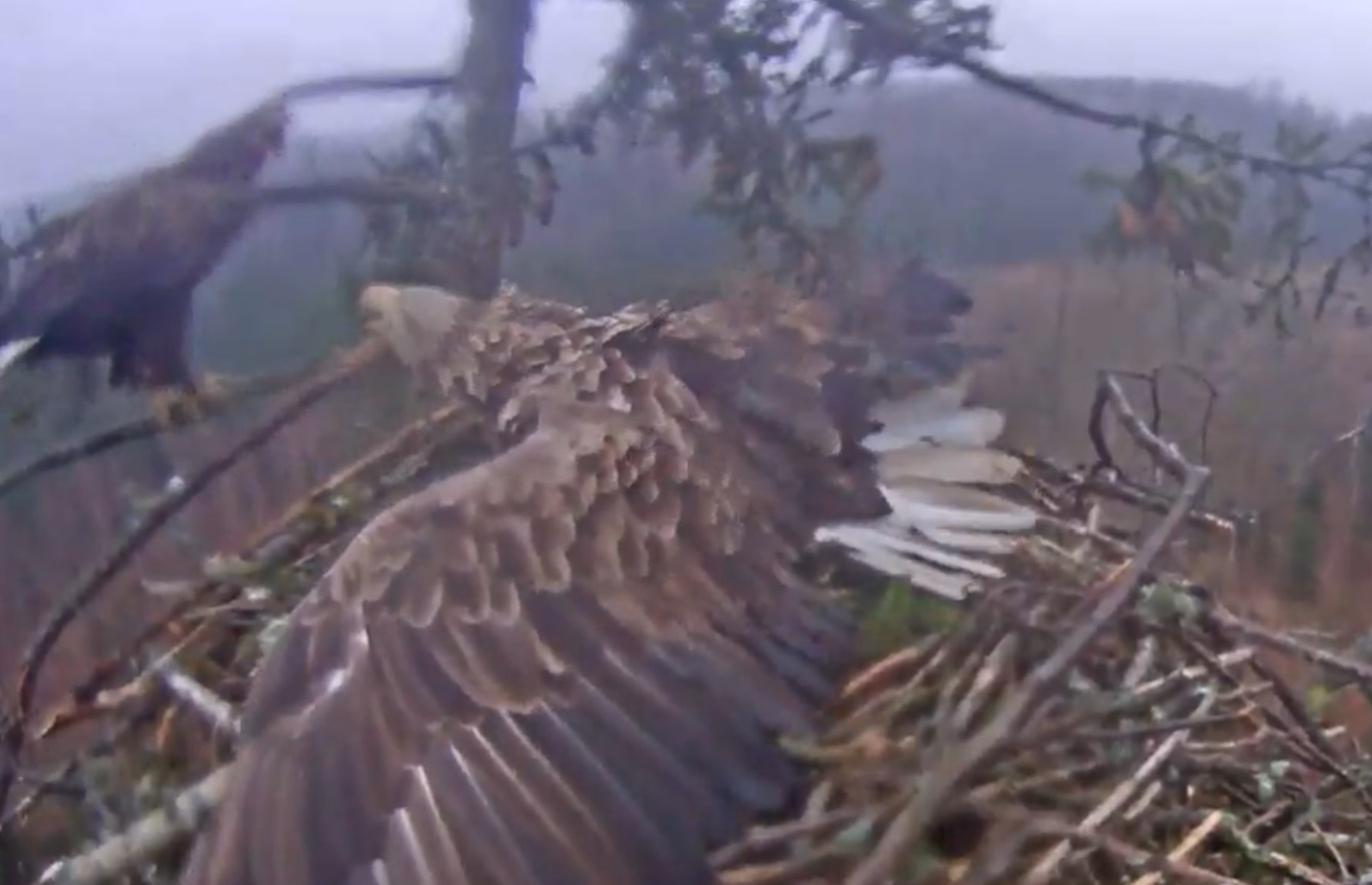 ... Secondka, bo to chyba samica, sądząc po dominacji i agresji, w jakimś dziwnym szale zaatakowała Tercka na skraju gniazda.