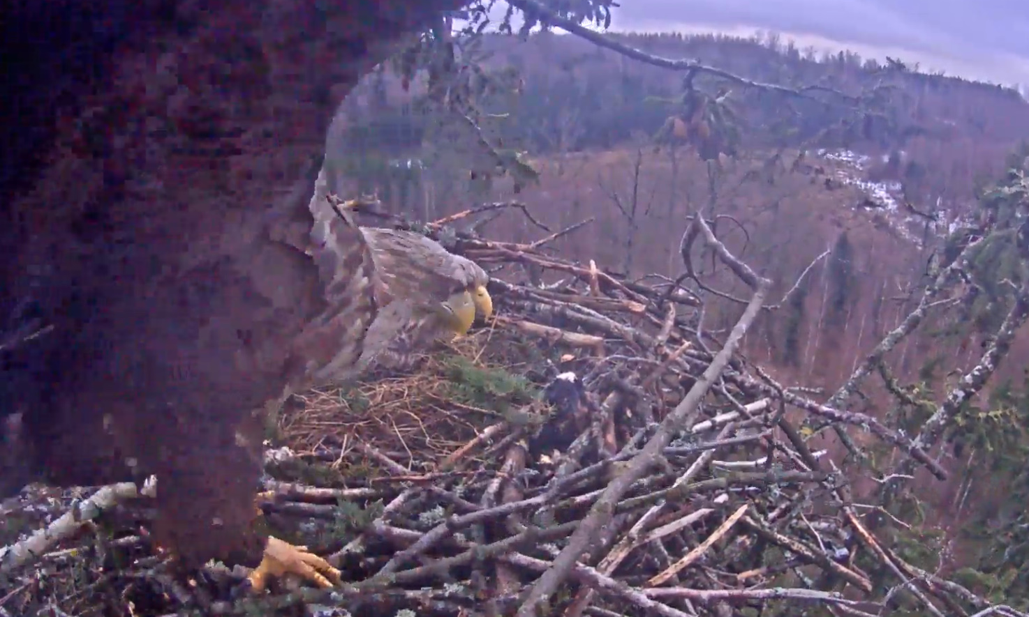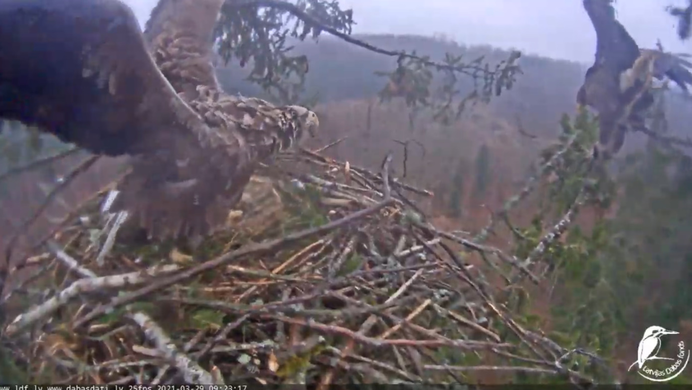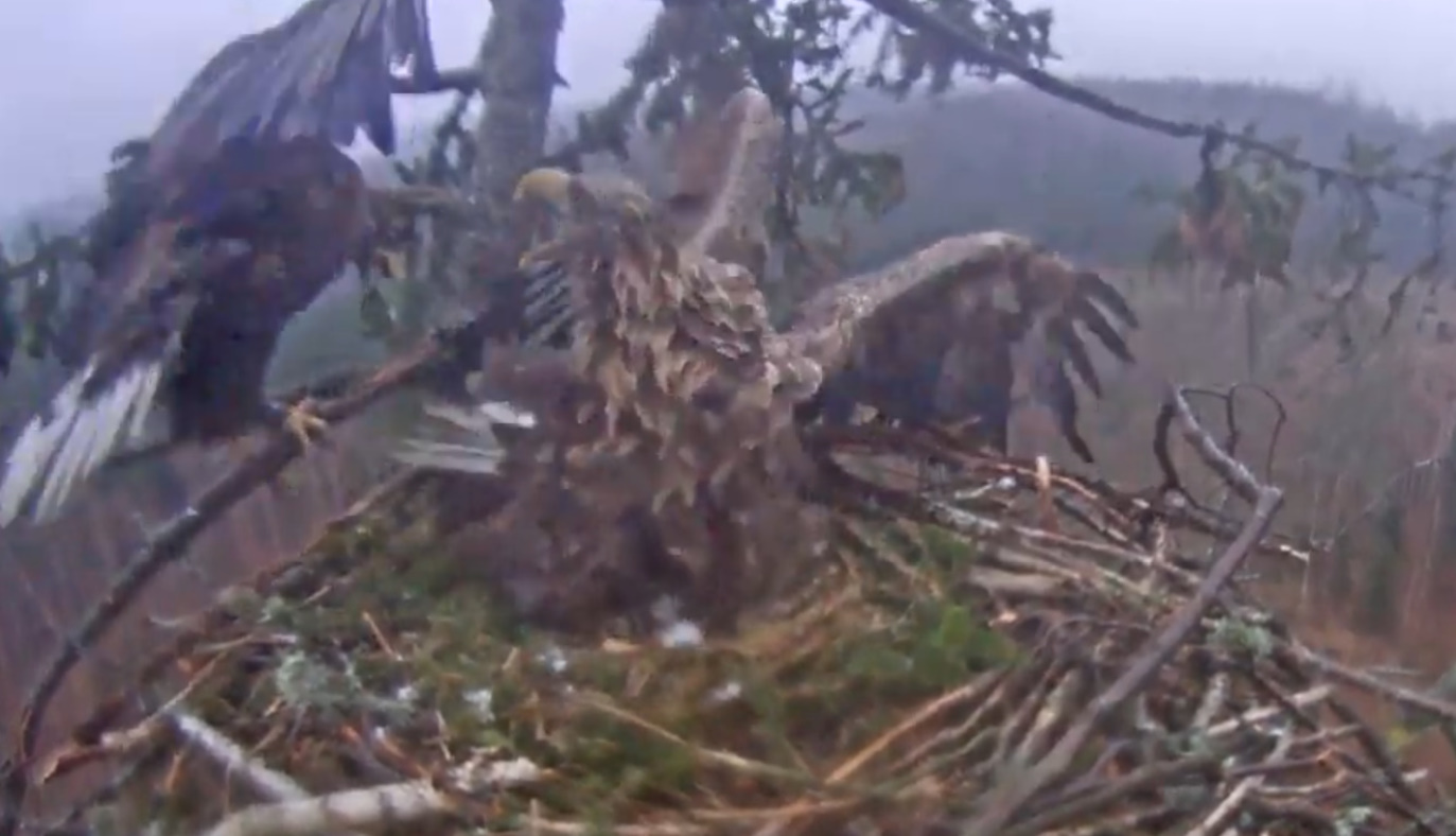 ... Secondka, bo to chyba samica, sądząc po dominacji i agresji, w jakimś dziwnym szale zaatakowała Tercka na skraju gniazda.