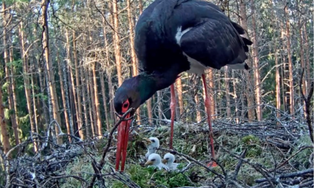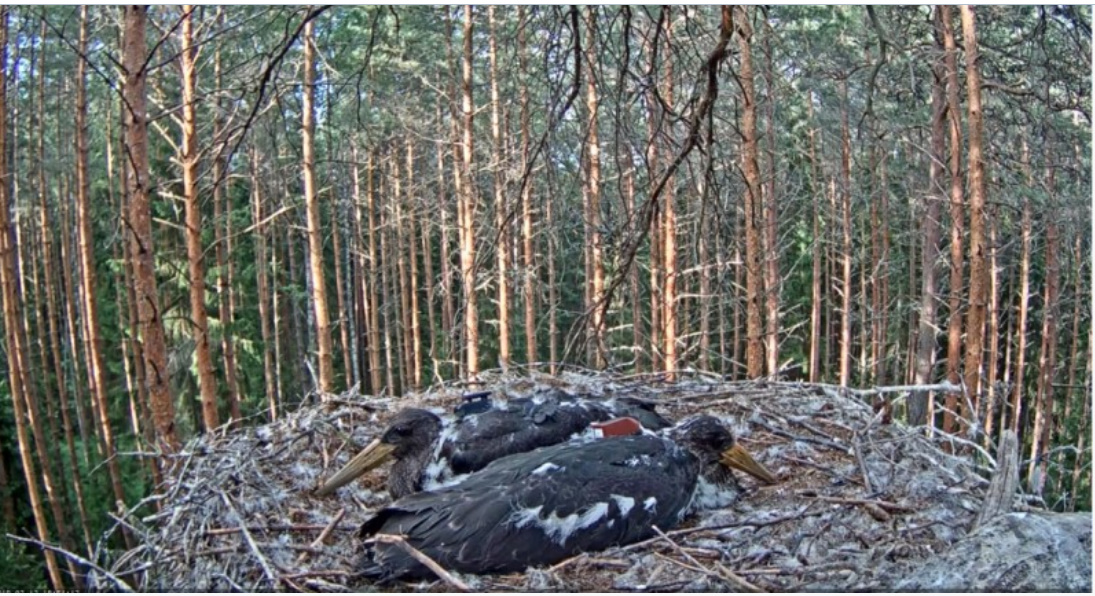 Dzisiaj podjęto próbę zaobrączkowania młodych. Próba nieudana, bo młode uciekły.