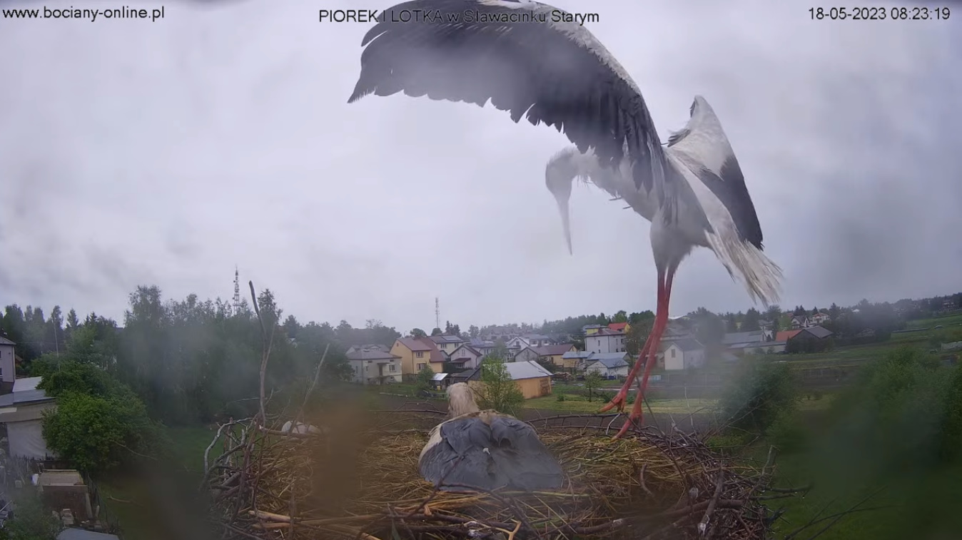 !8:37, od południa nie było zmiany, Lotka ponownie wylatuje z gniazda