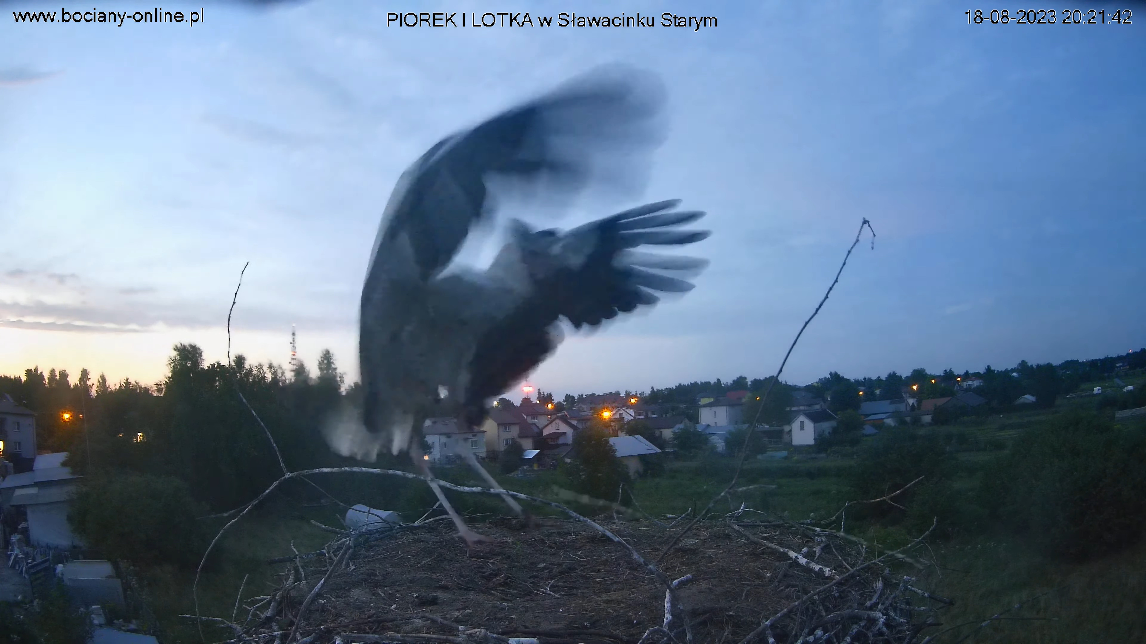 11 i 12 sierpnia sytuacja się powtarza. Bocian nocuje na maszcie.