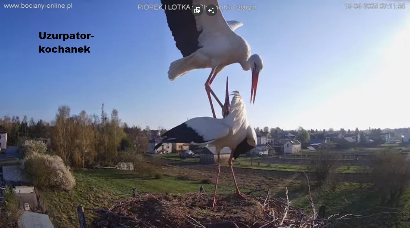 13 kwietnia - po różnych dziwnych wizytach, gniazdo zasiedliła para czyli Lotka i Piórek