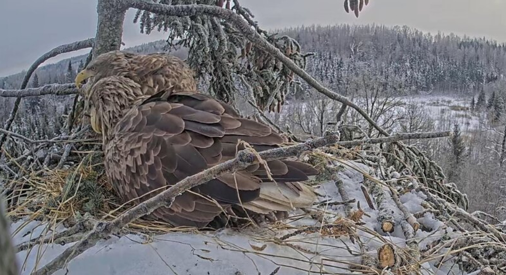 Janis , we wtorek, kilka godzin spędził pod gniazdem czekając aż młodzież odleci. A one jak na złość siedziały i siedziały