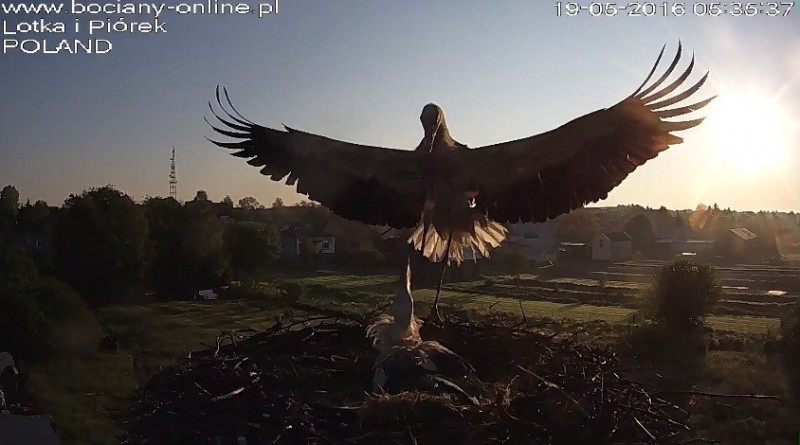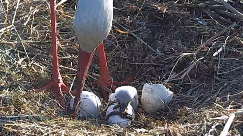 Niestety ok. 15-tej Lotka wyeliminowała najmłodsze pisklę. Można było zaobserwować, że maluch często leżał z łapkami w górze, a to nie jest pozycja silnego, zdrowego pisklaka.