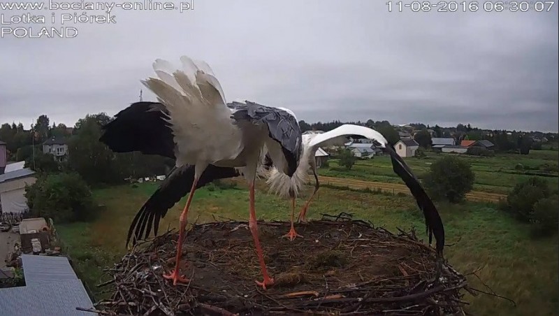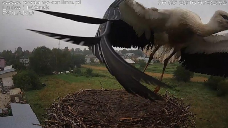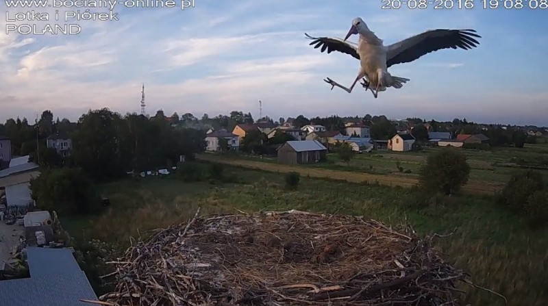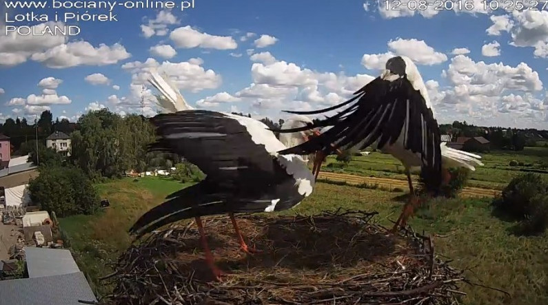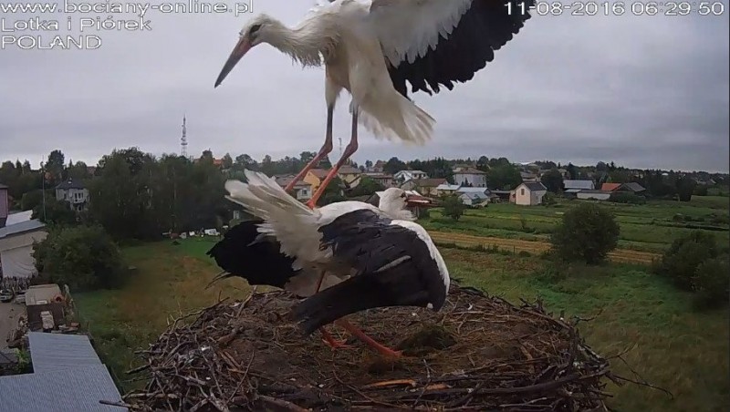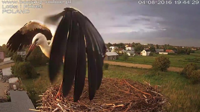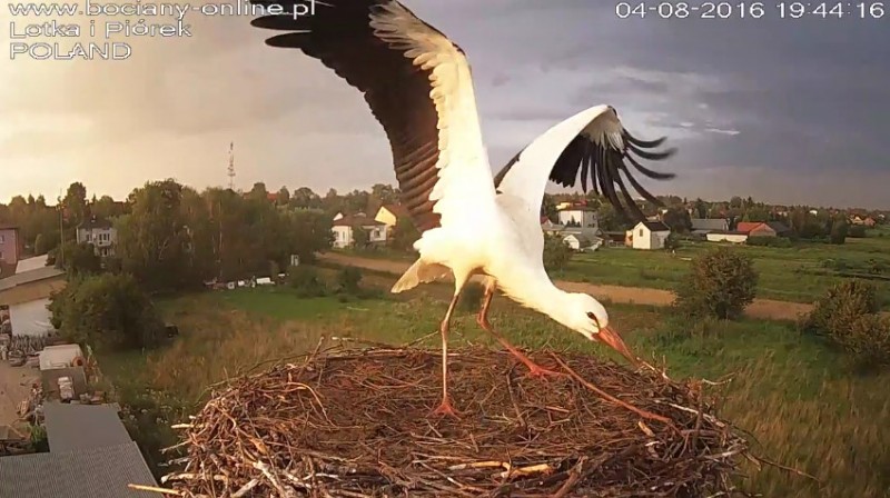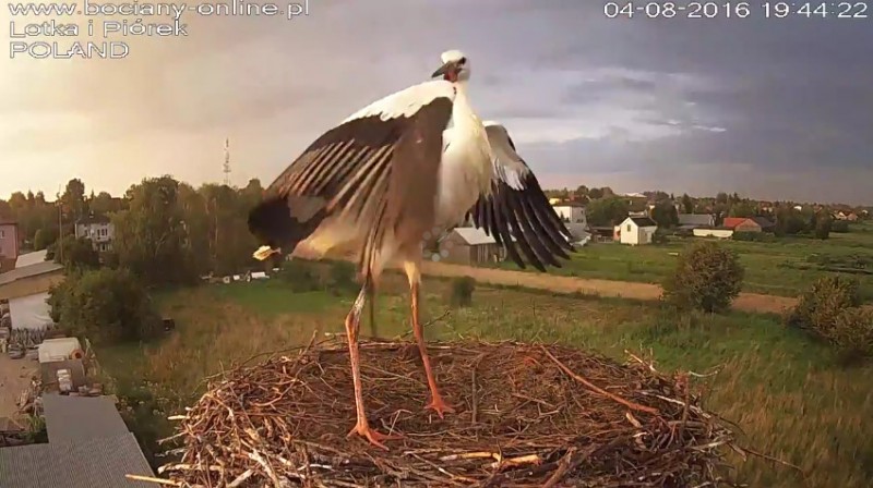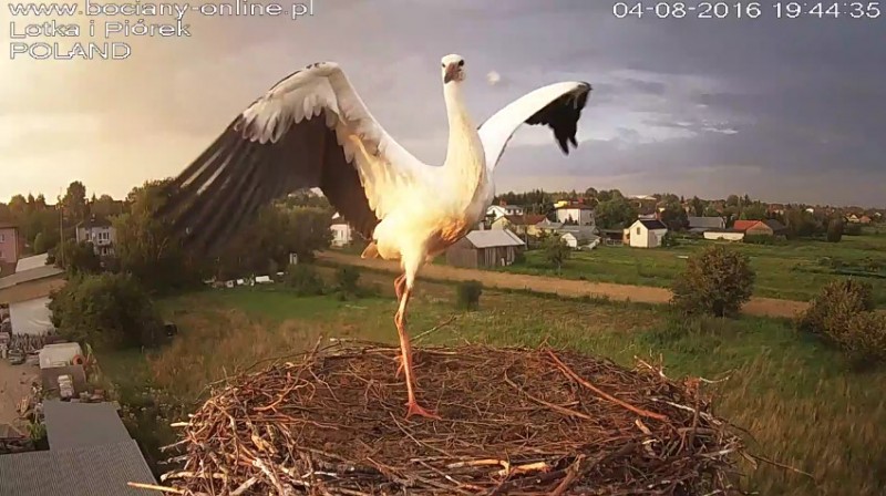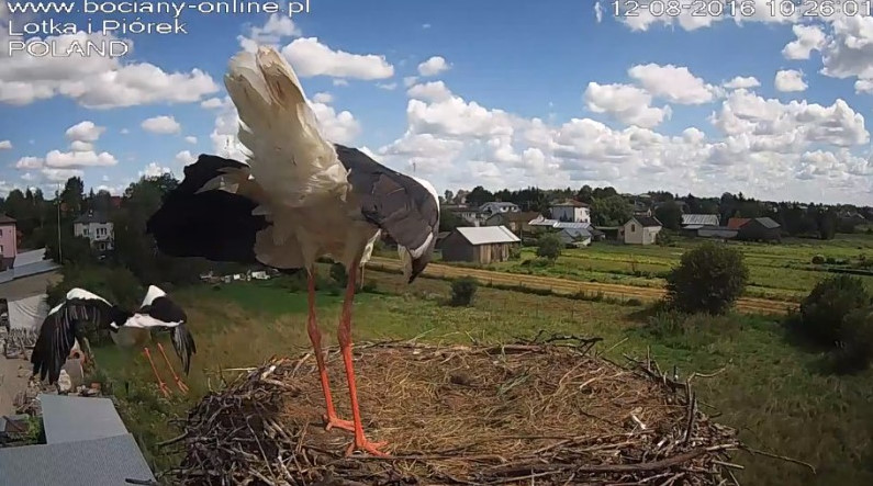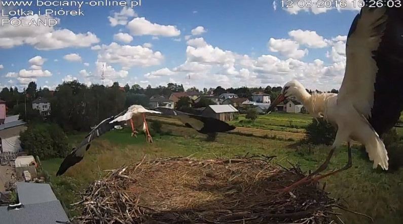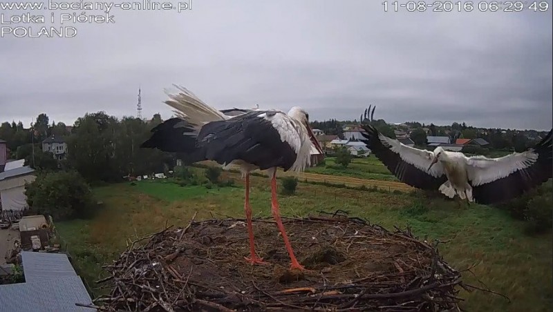 Potem Lotka wystartowała do Pióra, pogoniła go. Wróciła z pierzem w dziobie. Nie wpuściła do gniazda.
