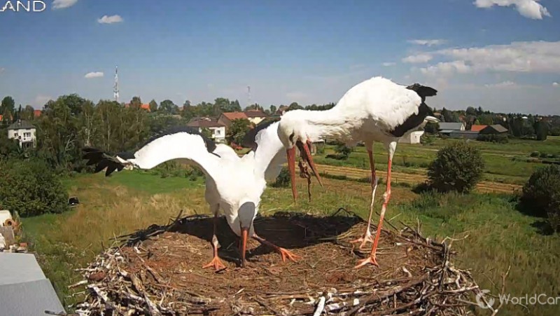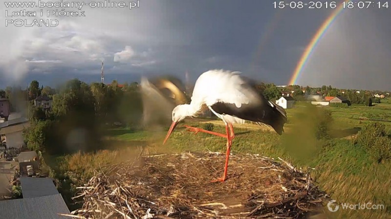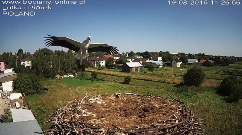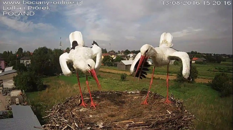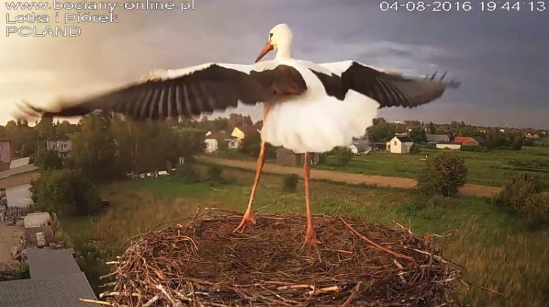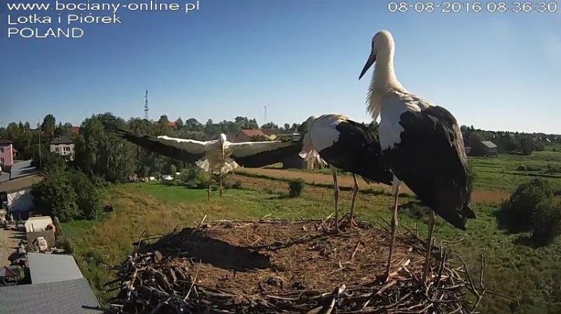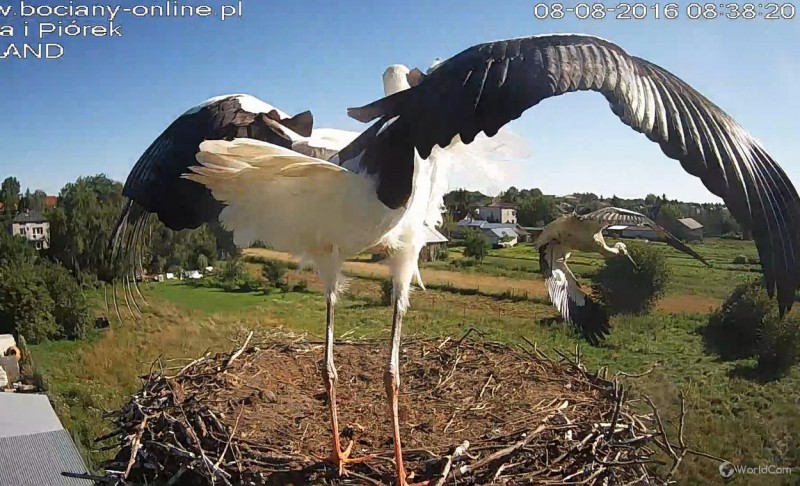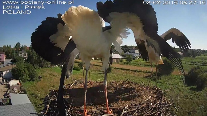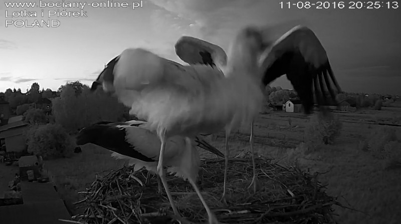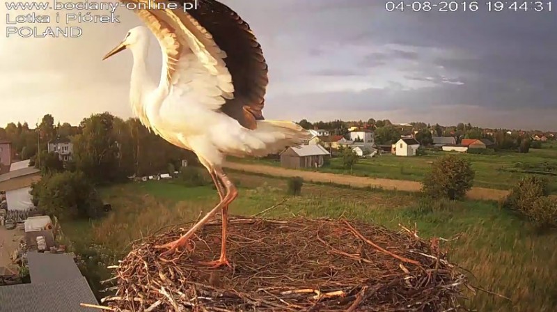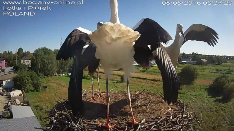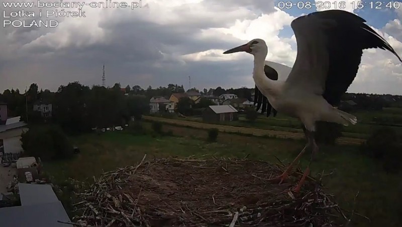 Potem Lotka wystartowała do Pióra, pogoniła go. Wróciła z pierzem w dziobie. Nie wpuściła do gniazda.