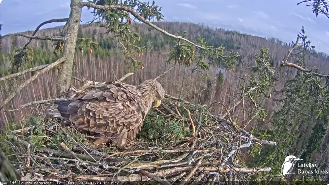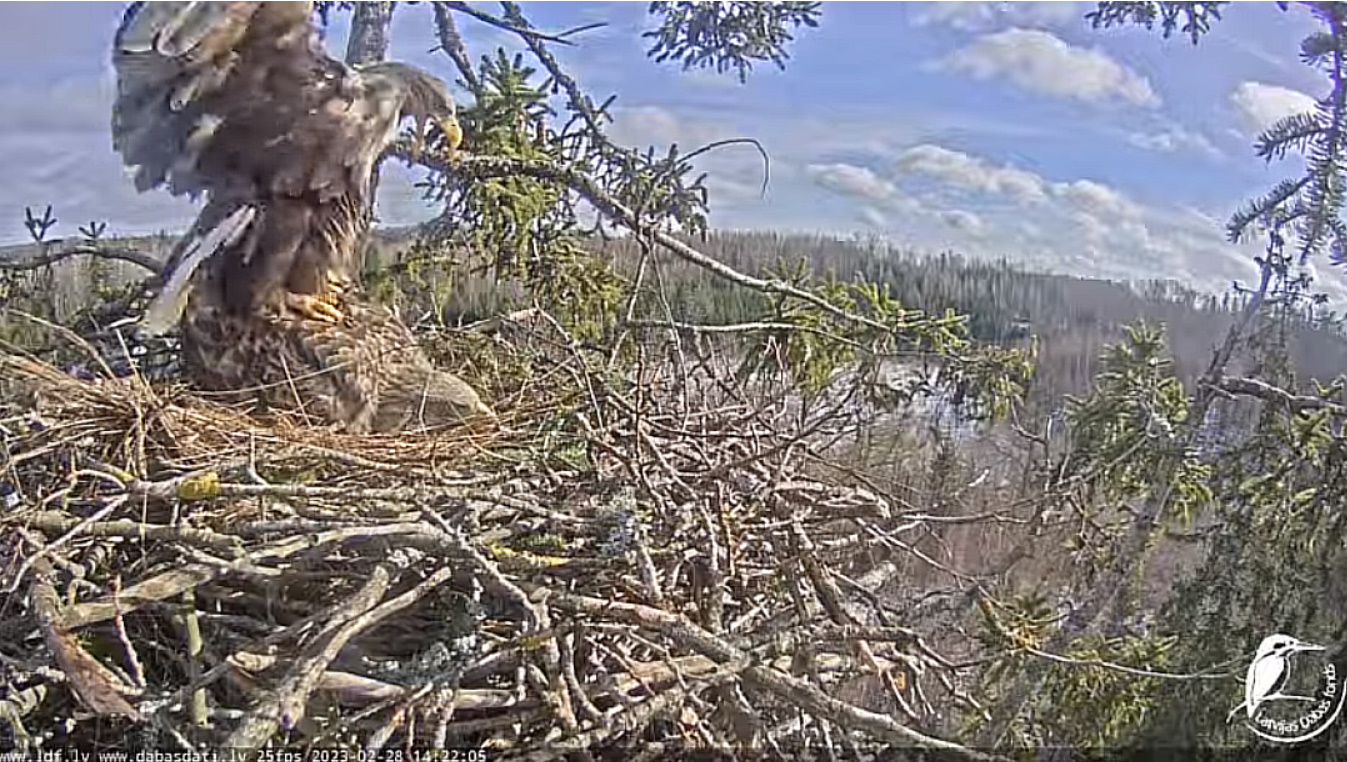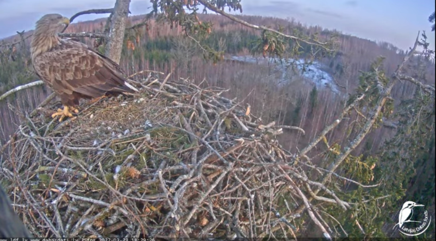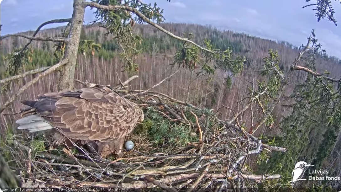 Dziś byliśmy świadkami bardzo ciekawego obrotu wydarzeń – nie zaobserwowałem jeszcze takiego przypadku.. Rolę odegrał fakt, że samiec jest młody i niedoświadczony, jego związek z terytorium i tym partnerem nie jest jeszcze tak silny. Samica ( Milda) nadal jest w fazie wysiadywania, ale nie można wykluczyć, że w tym gnieździe zostanie złożone kolejne jajo, za tydzień lub dwa. Obrączkowałem ptaka H 426 w okolicach Jaunpils w dniu 25.05.2016. Jest to młoda samica, która osiągnęła wiek rozrodczy i szuka miejsca do gniazdowania, nie można wykluczyć, że jeszcze ją tu zobaczymy i konflikty będą trwały. I jeszcze raz proszę do powstrzymania się od obraźliwych epitetów w swoich komentarzach. Oglądanie przyrody z bliska to zaszczyt.