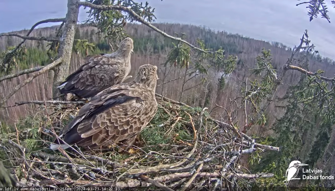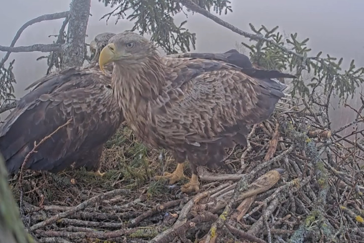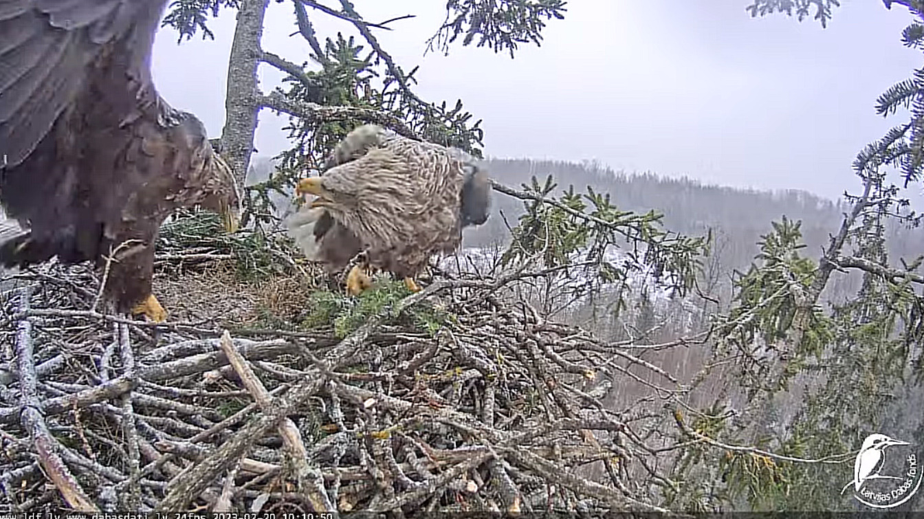 Milda i Voldis umacniają gniazdo. Wykopali taki dołek, że jak będą jaja, to chyba będziemy zgadywać ile