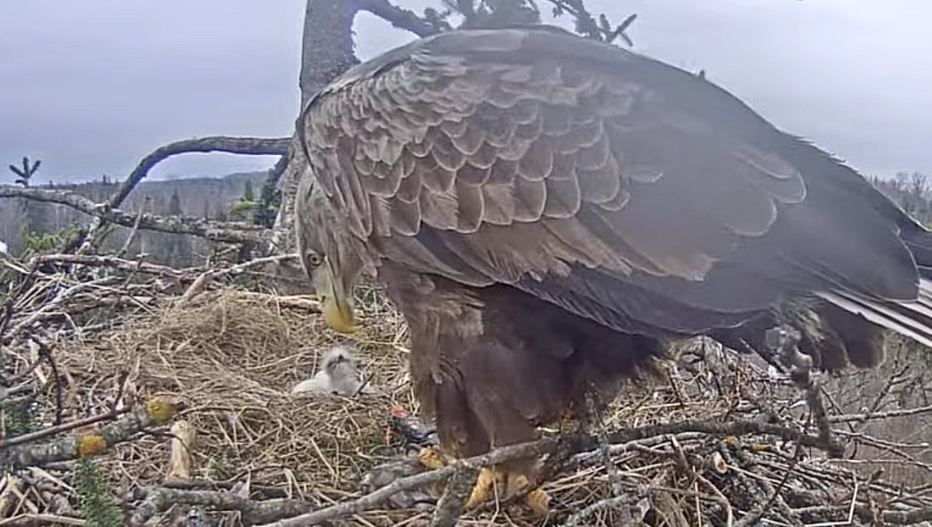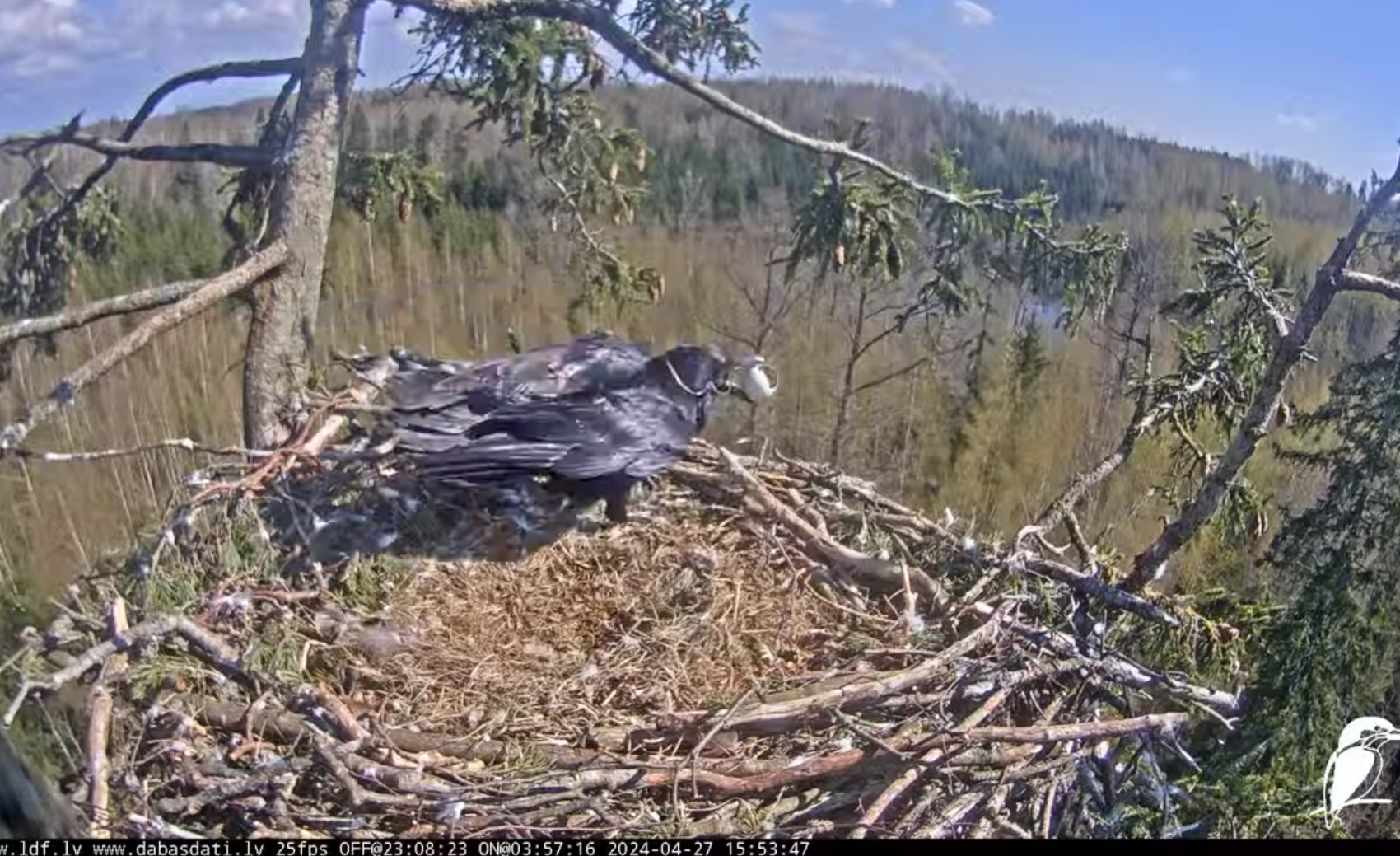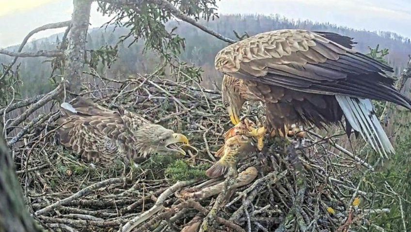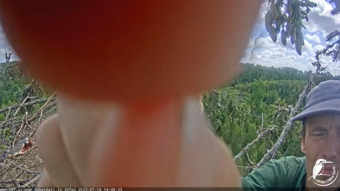 Powtarzając to, co zostało już wielokrotnie powiedziane tej wiosny – 40% zajętych gniazd nie kończy sezonu lęgowego młodymi ptakami. Jeśli spojrzymy na wieloletnią historię terytorium Durbe (uwzględniamy także rok 2014, kiedy to gniazdo pomyślnie zagnieździło się na innym drzewie), to mamy 10 sezonów z zajętymi gniazdami (w 2016 r. określiłem gniazdo jako niezajęte). a u sześciu z nich zagnieżdżenie zakończyło się sukcesem. Dochodzimy do tych samych 60%, więc nie można powiedzieć, że gniazdo Durbe jest szczególnie mniej udane niż inne. Pozostaje tylko założyć, że widzimy bardzo wyraźne przykłady tego, jak to się dzieje. Nie ma powodu się tu wtrącać.”