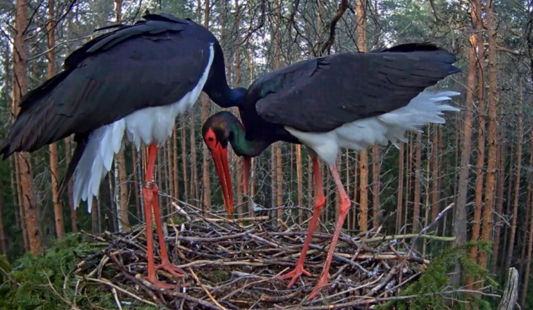 W Łotwie za bardzo się rozpędzili. Żeby nie było tak jak w roku zeszłym w Estonii - pozbywania się pisklęcia w drastyczny sposób. Przyczyną było prawdopodobnie brak możliwości wykarmienia wszystkich piskląt i stąd eliminacja ostatniego i najsłabszego. A w Łotwie oby nie było przyczyną brak miejsca - wydaje sie trochę gniazdo za małe. A Karl jak widać nie "odpuszcza"