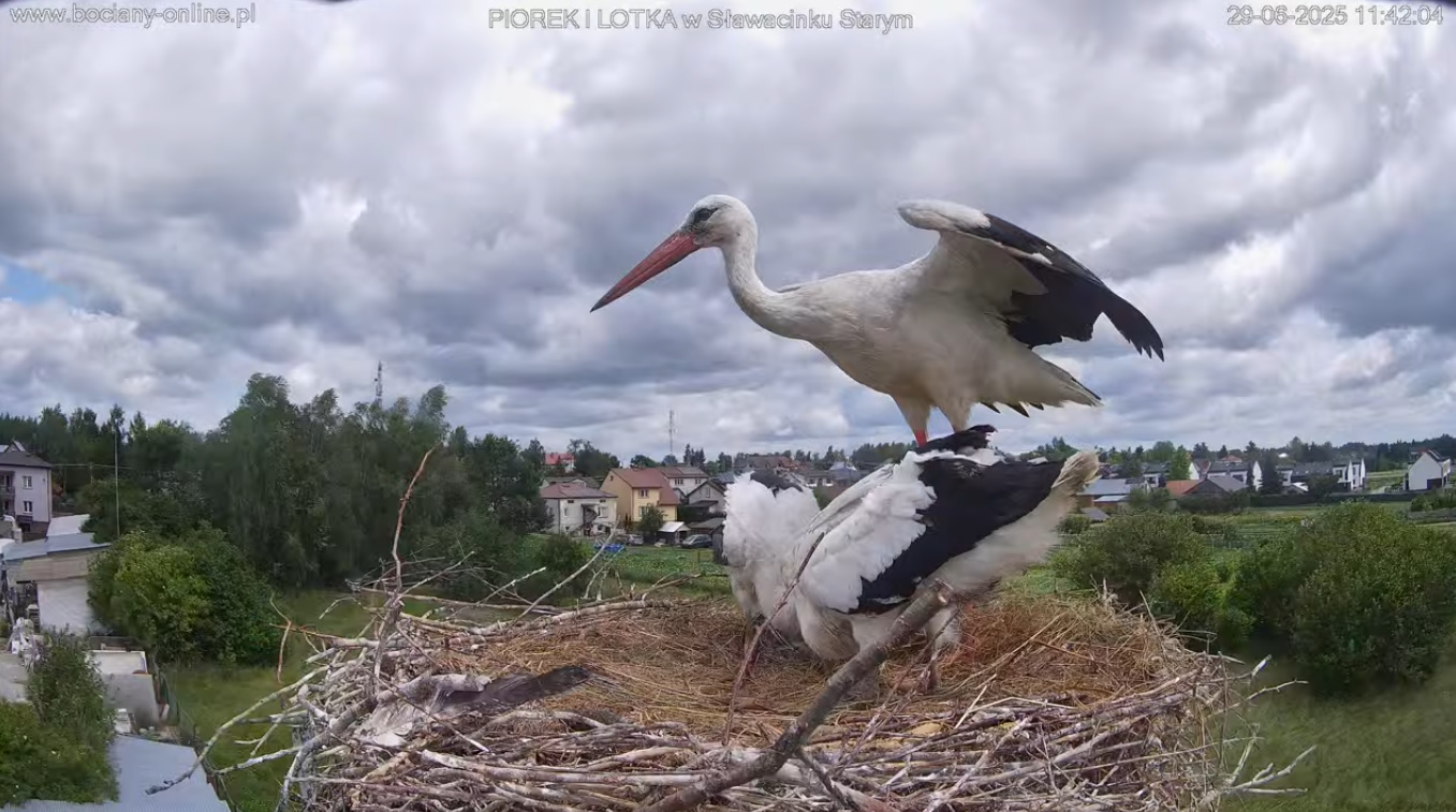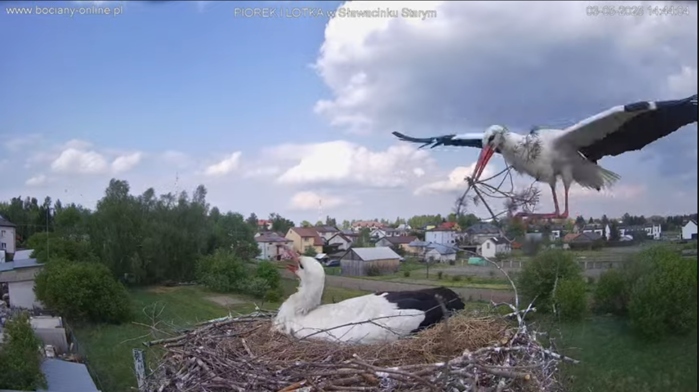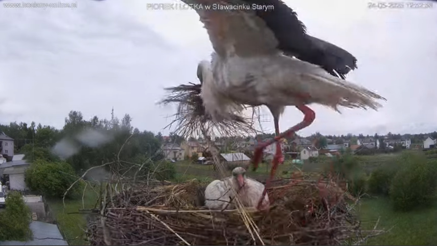 Jak Lotka z poprzednich sezonów. Może to ona ? Bociek wyrażnie miał pozbierany pokarm bo nawet kilka razy jakby wole próbowało się opróżnić. Pomyliła gniazdo ?