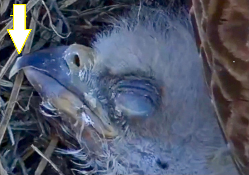Lewa noga Edytki zaplątała się prawdopodobnie w hiszpański mech -oplątwę brodaczkową, porastającą drzewo na którym jest gniazdo . Oglądający bieliki są zaniepokojeni. Moderatorzy czatu na stronie gniazda wyrażają nadzieję,
