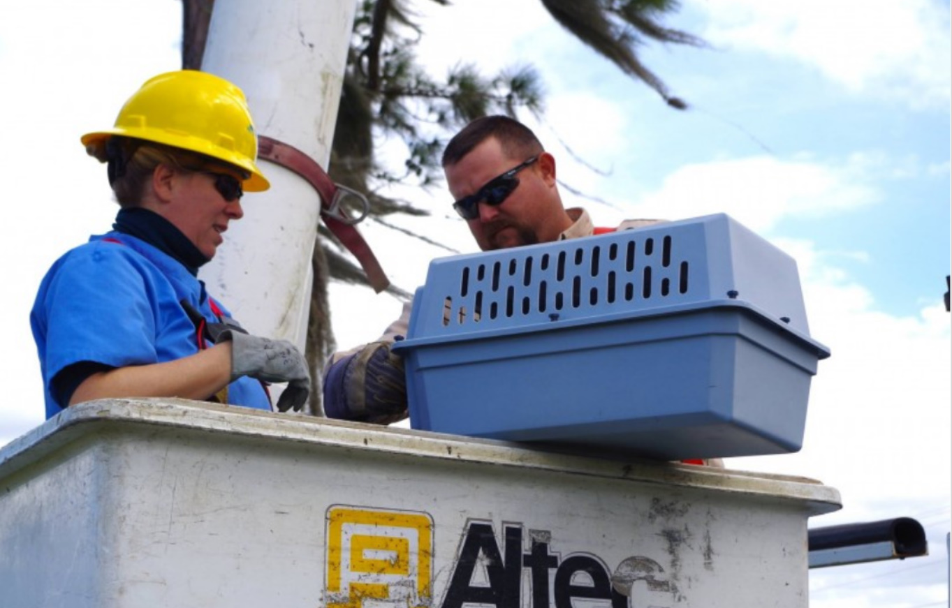 Podnośnik sfinansował Dick Pritchett, na terenie którego znajduje się gniazdo.