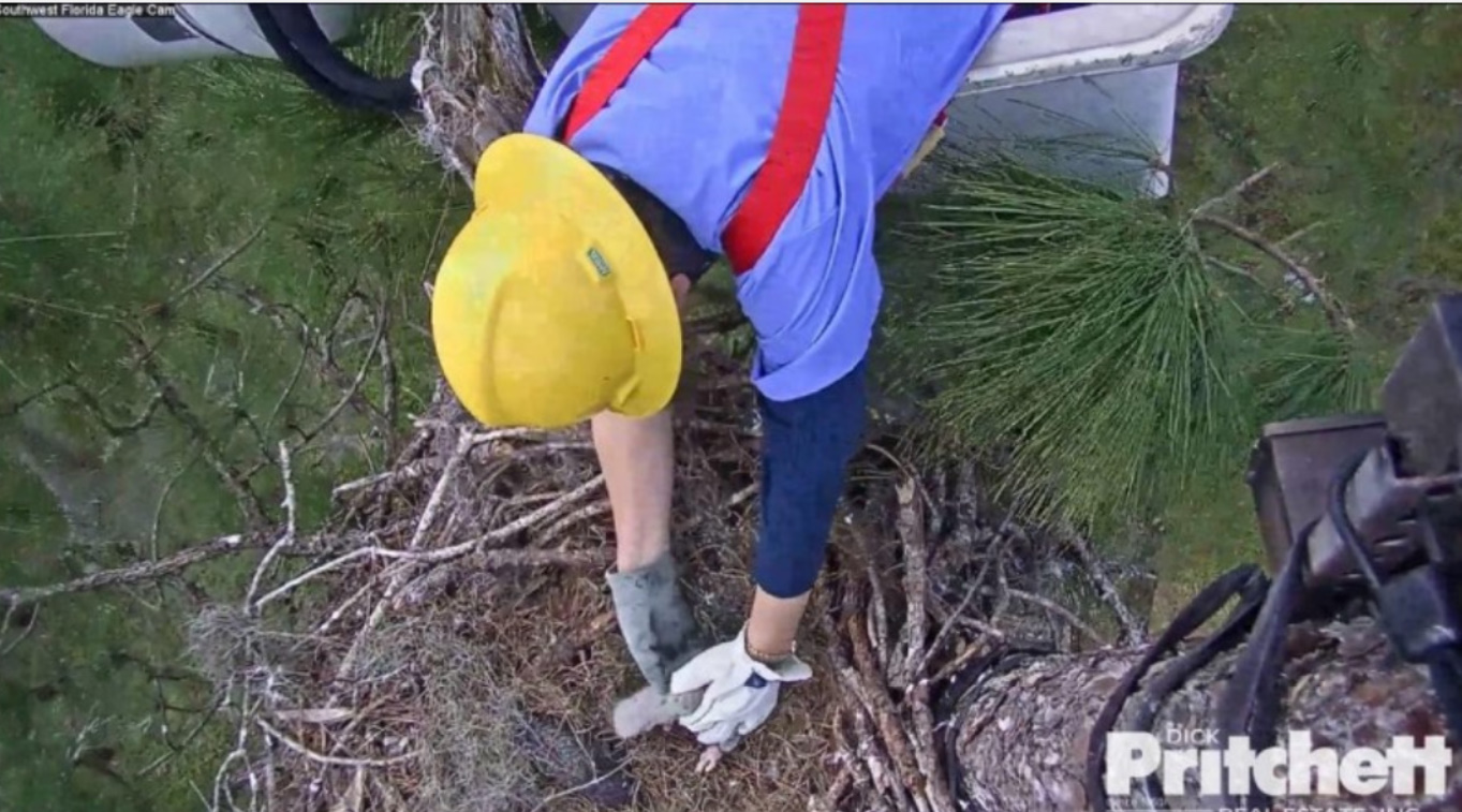 Podnośnik sfinansował Dick Pritchett, na terenie którego znajduje się gniazdo.