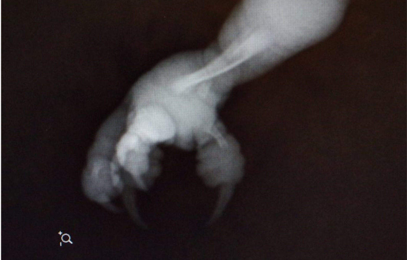 "Wspaniałe wiadomości o Edytce z CROW-Clinic for the Rehabilitation of Wildlife, Inc. Nie będzie konieczny żaden zabieg, łapka została uwolniona, opuchlizna schodzi, krew dochodzi do pazurków. Łapka jest rehabilitowana, żeby szybciej wróciła do pełnej sprawności. Edytka dobrze reaguje na leki."