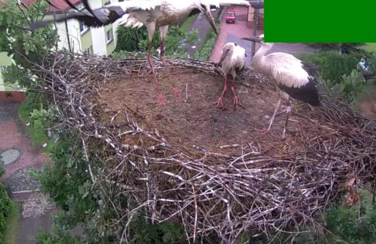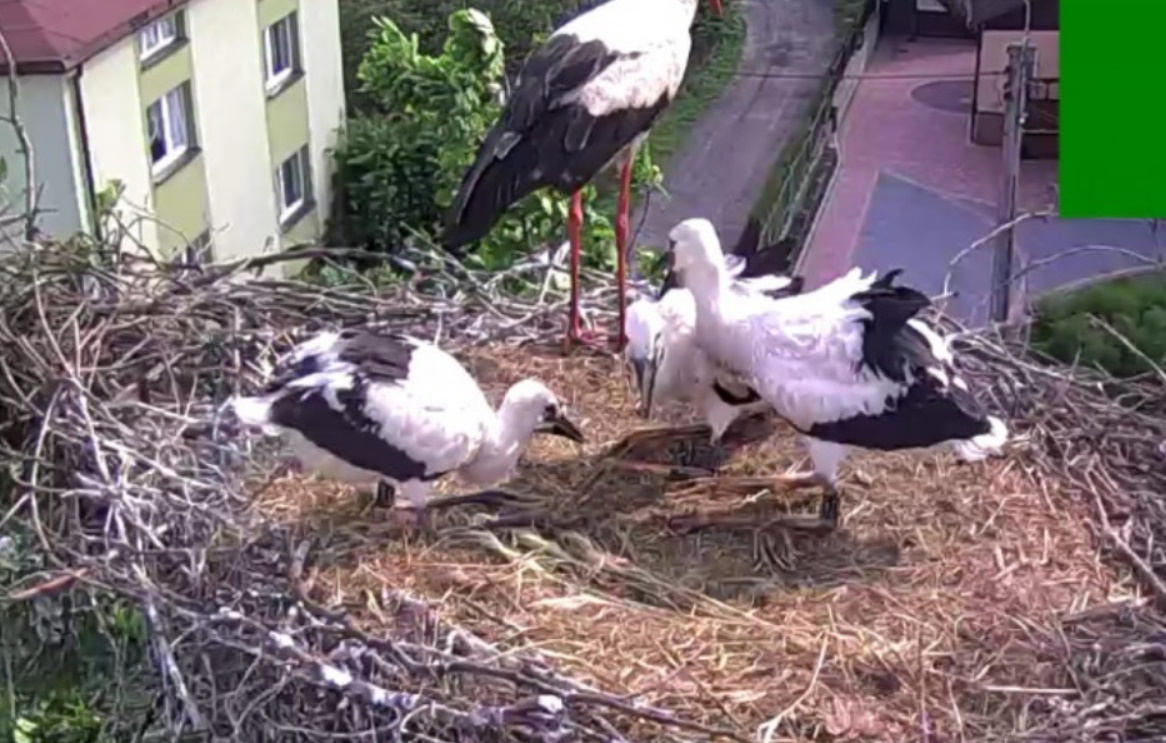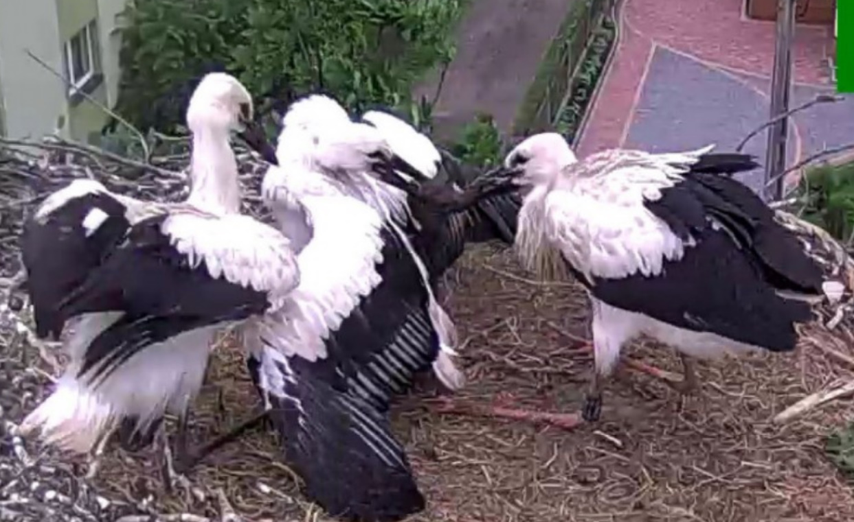Tyszątka rosną, może i mają mniej jedzenia niż inne bocianki, ale po skrzydłach widać, że drobna dieta nie wpływa na prawidłowy rozwój