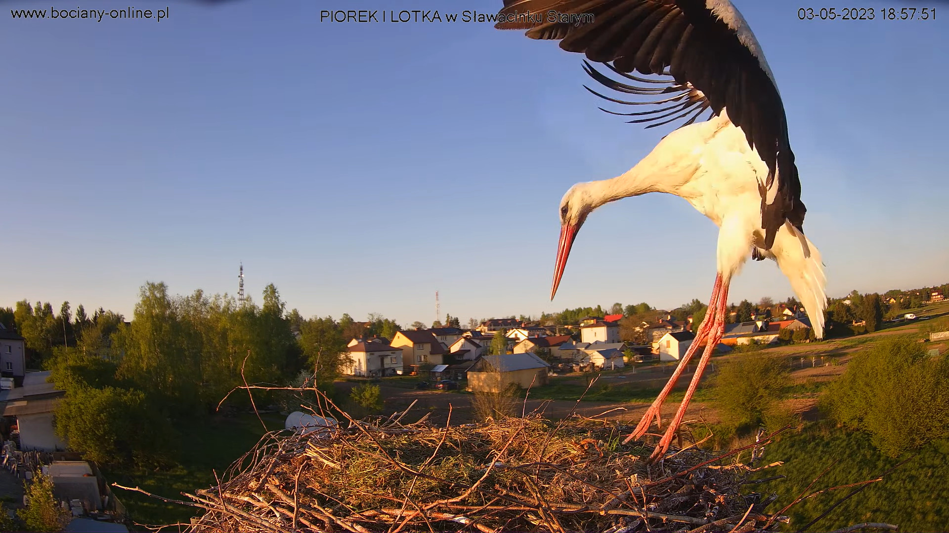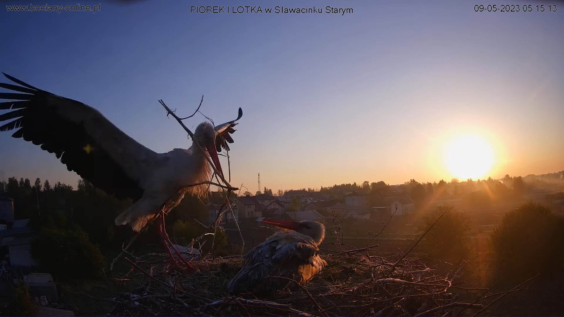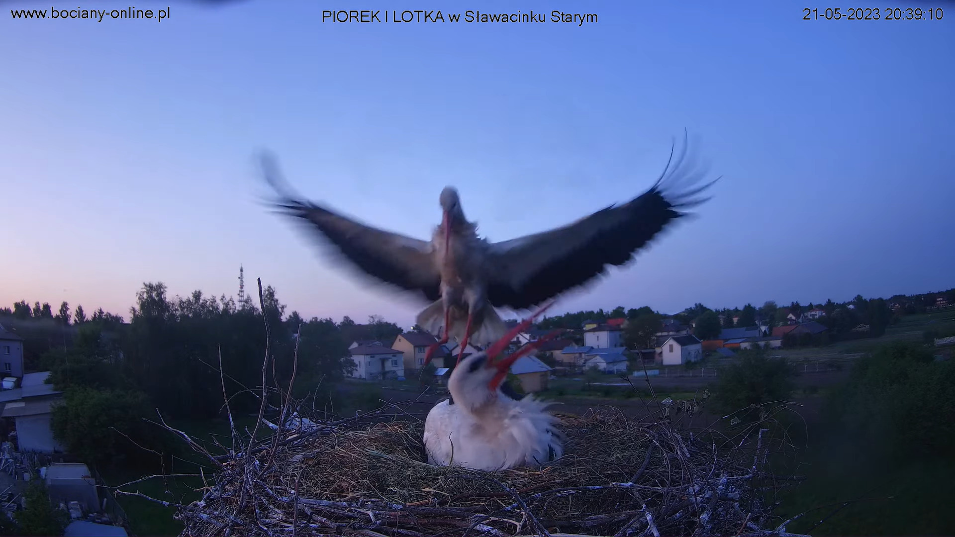 A wieczorem tradycyjnie, po kolacji Piórek na maszcie od małej kamery, Lotka wysiaduje jaja