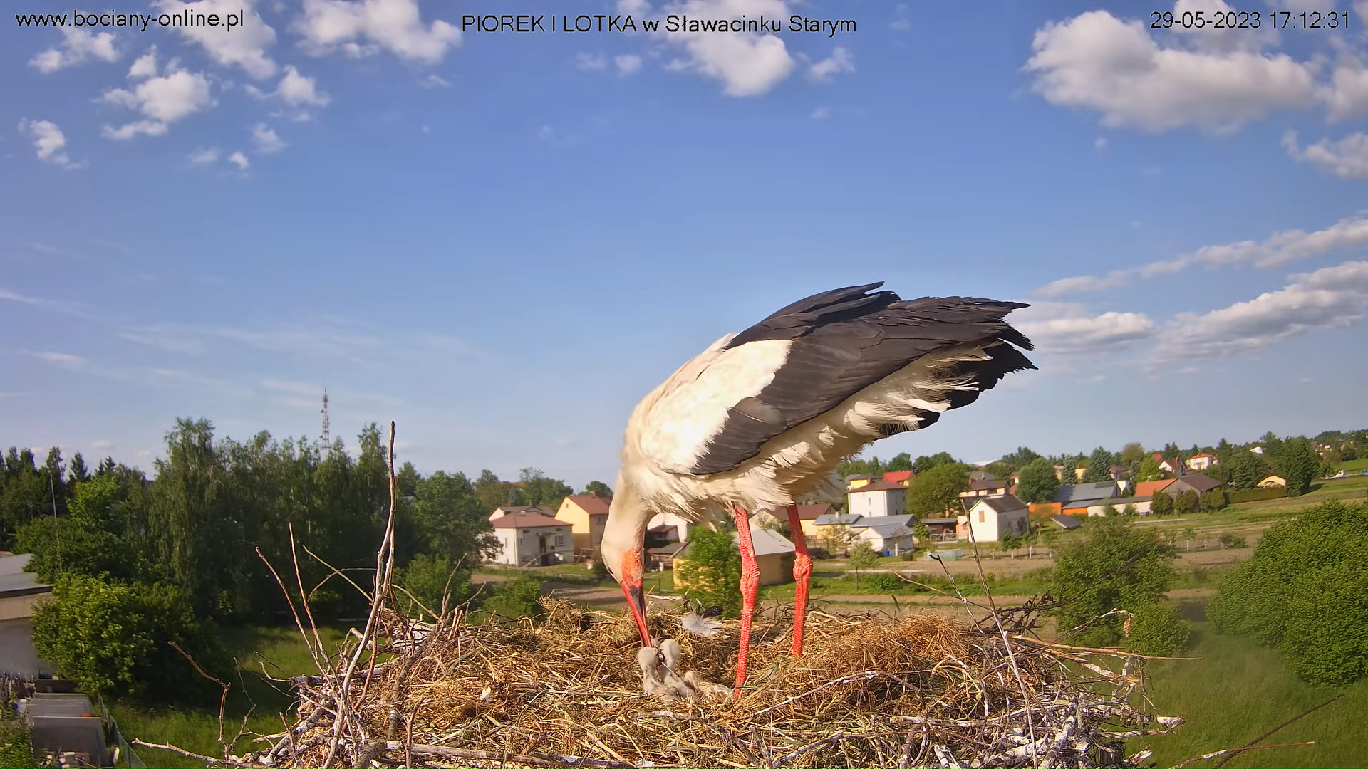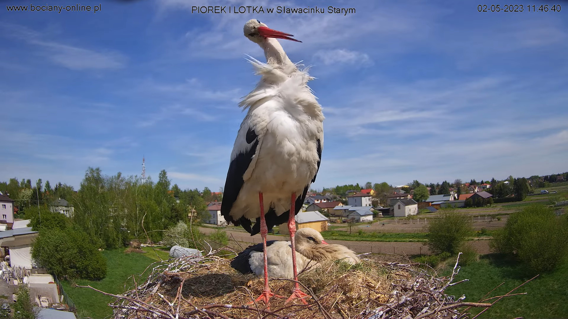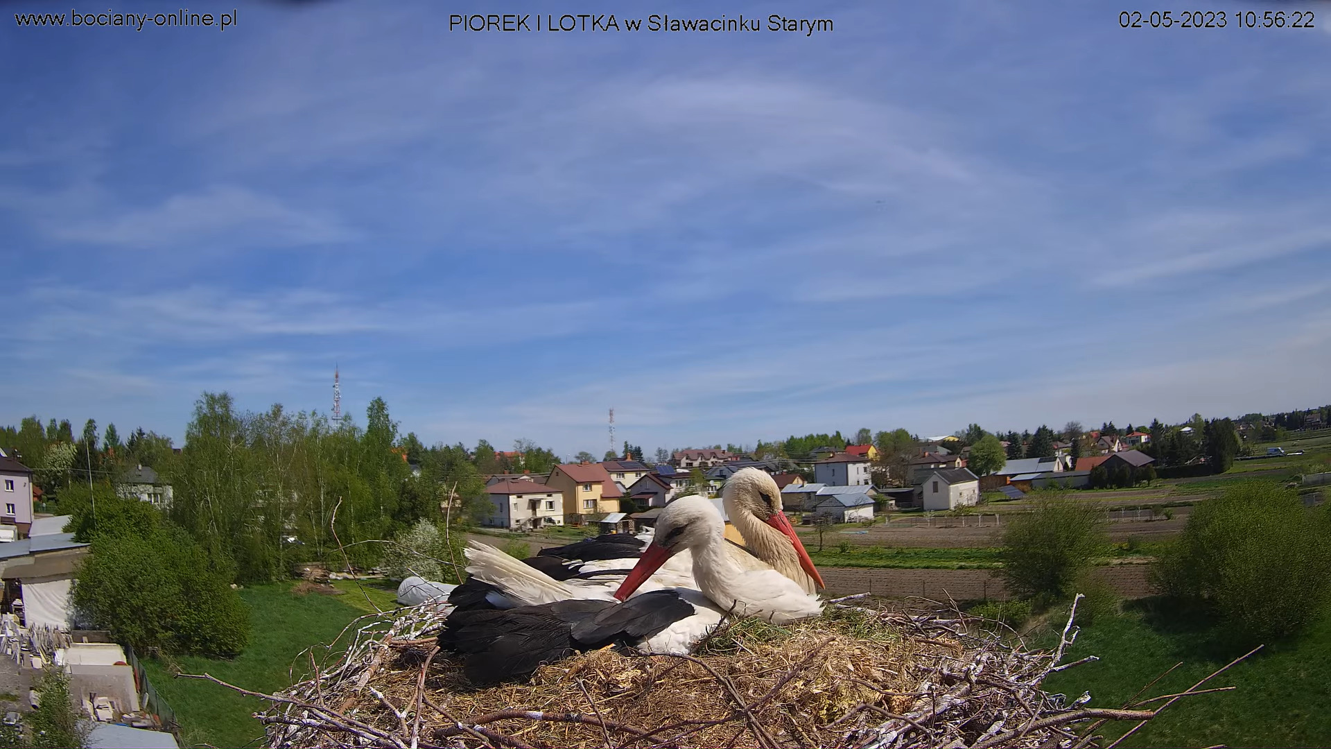 A wieczorem tradycyjnie, po kolacji Piórek na maszcie od małej kamery, Lotka wysiaduje jaja