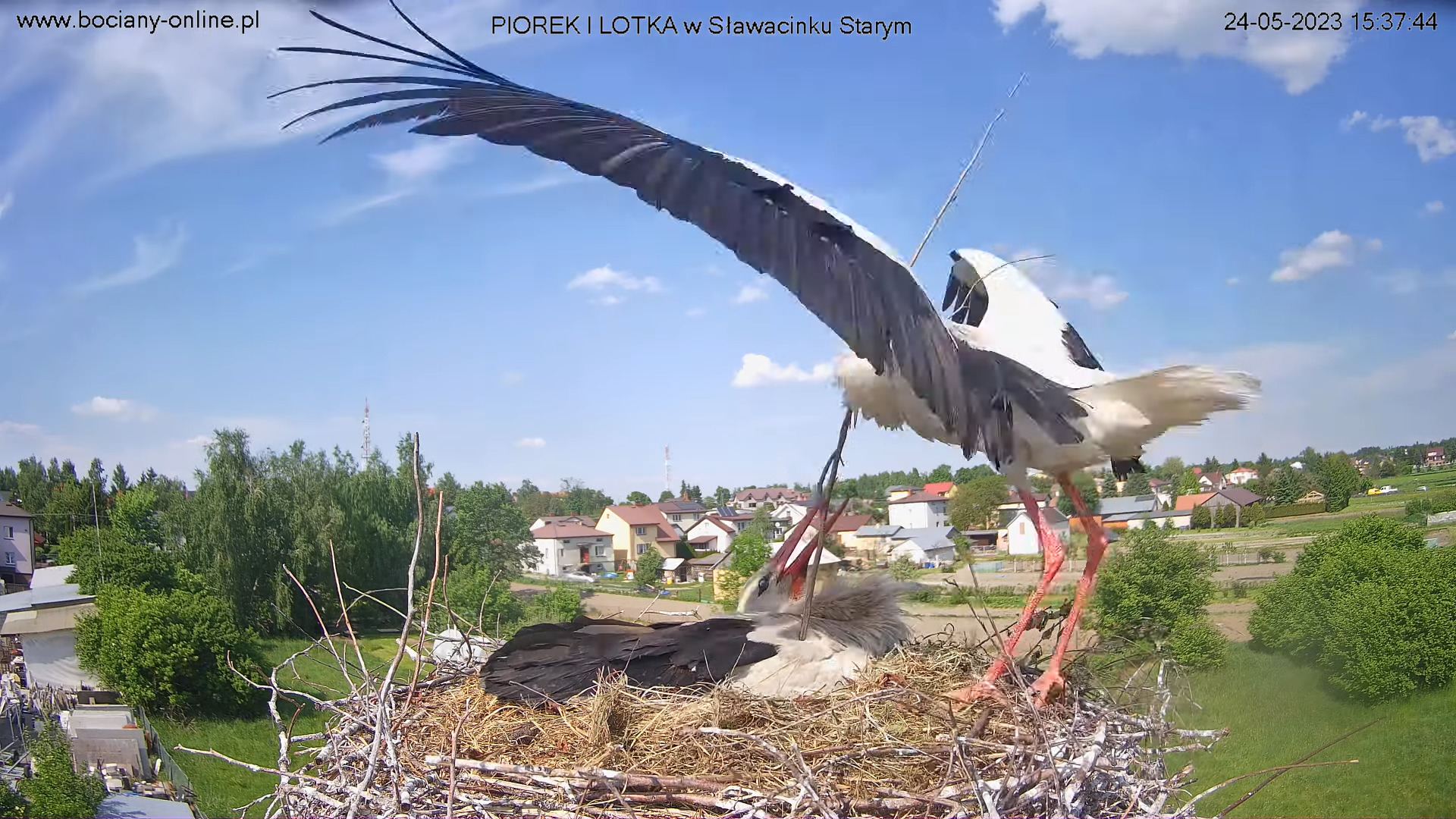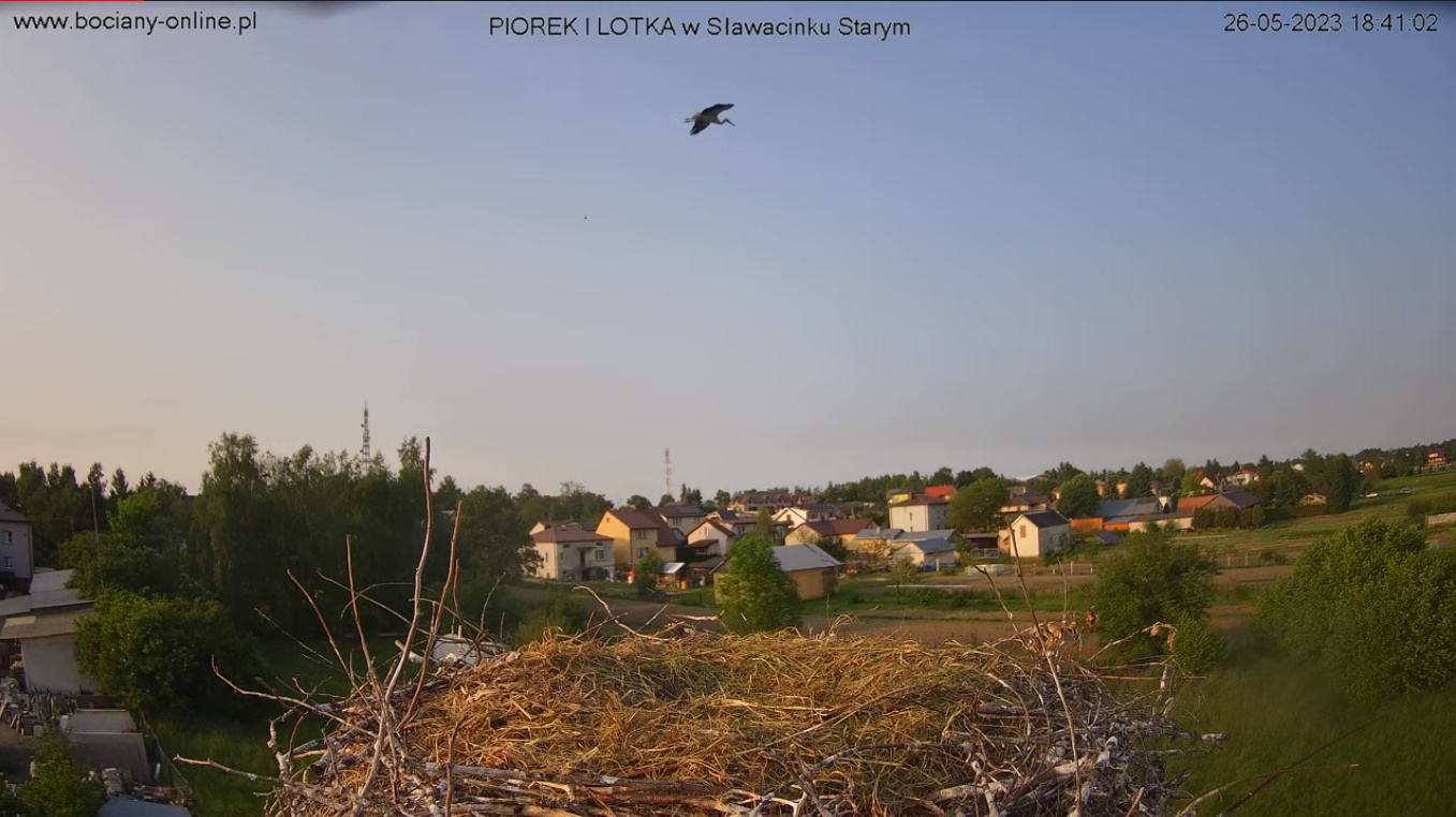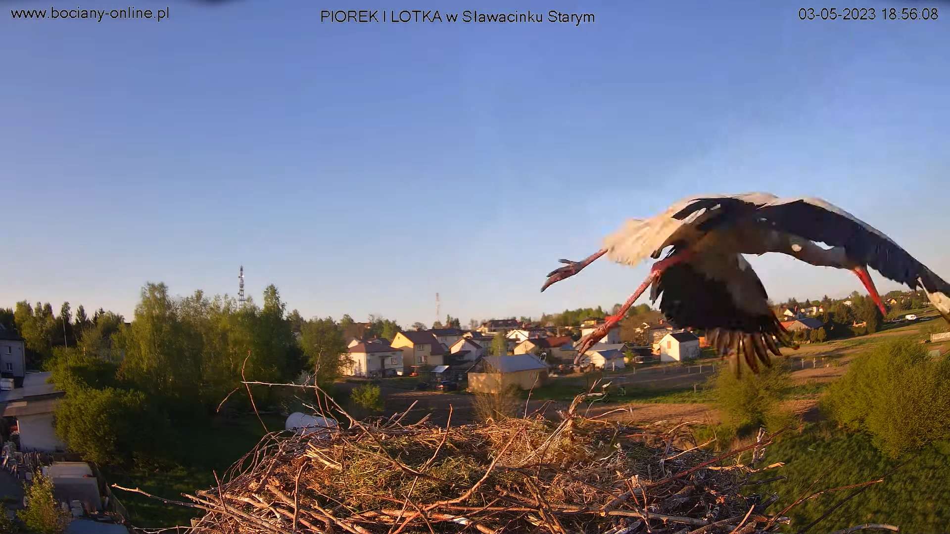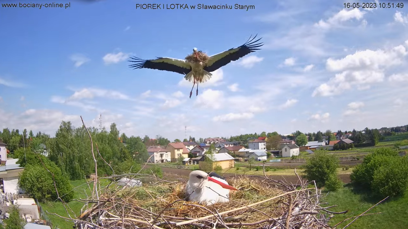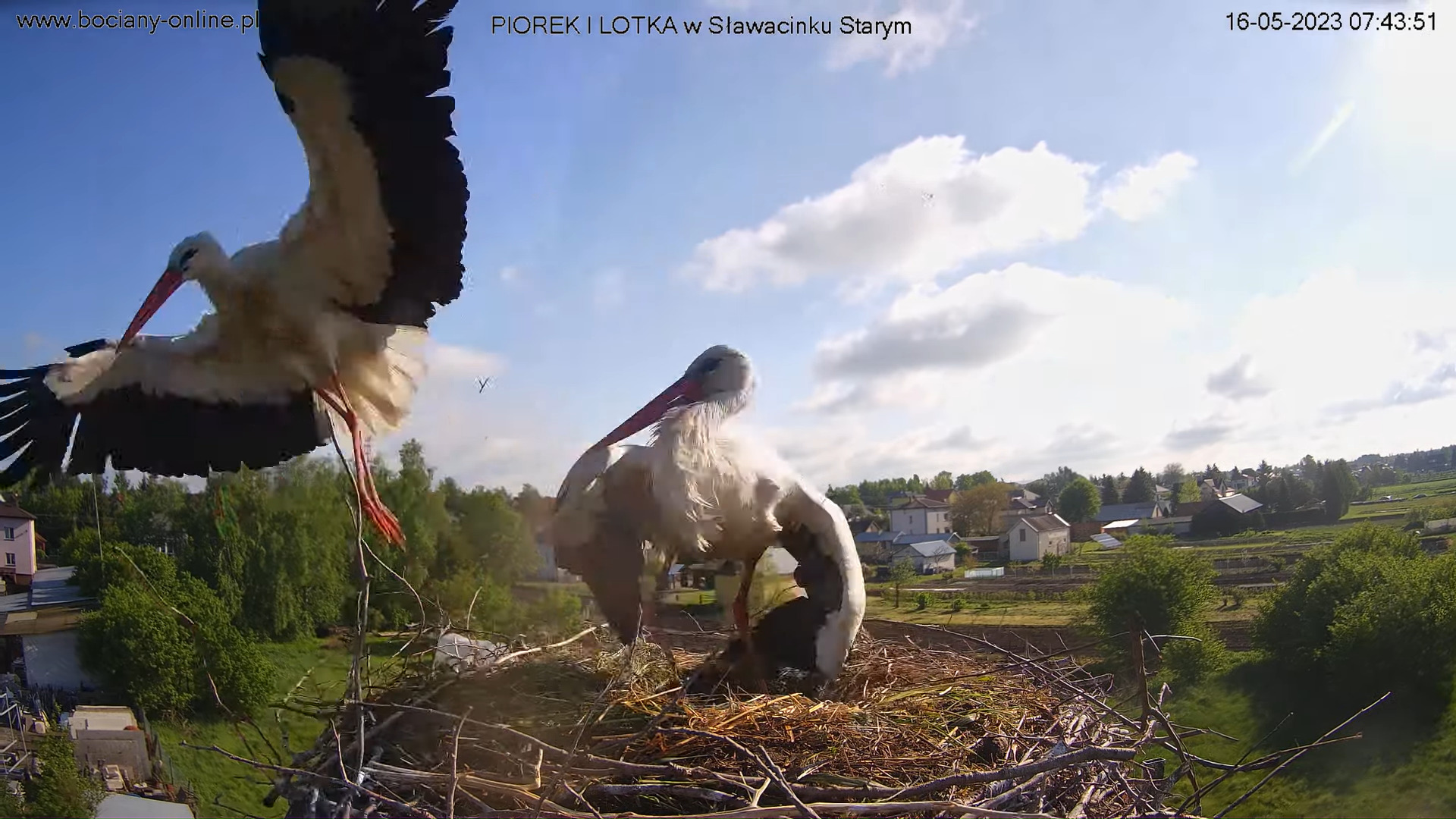 !8:37, od południa nie było zmiany, Lotka ponownie wylatuje z gniazda