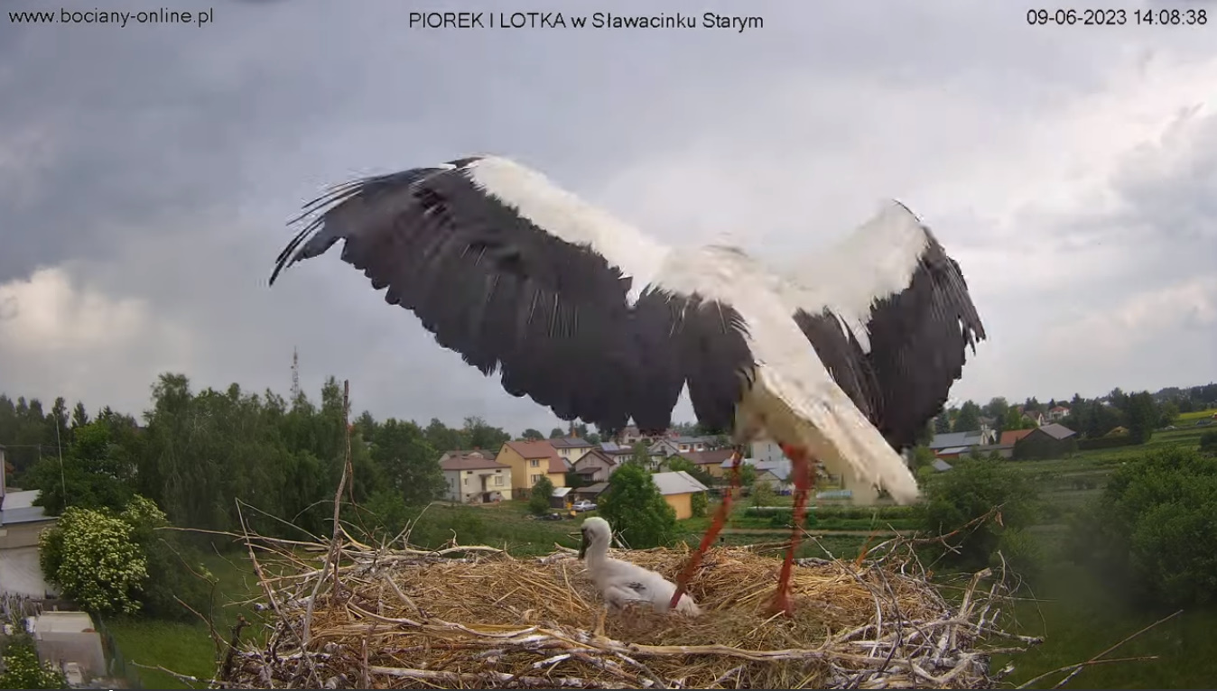 W południe przez Lotkę, a wieczorem Piór próbował wykonać ... Jeszcze się nie udało. Ale nie miejmy nadziei, boćki są niezwykle konsekwentne