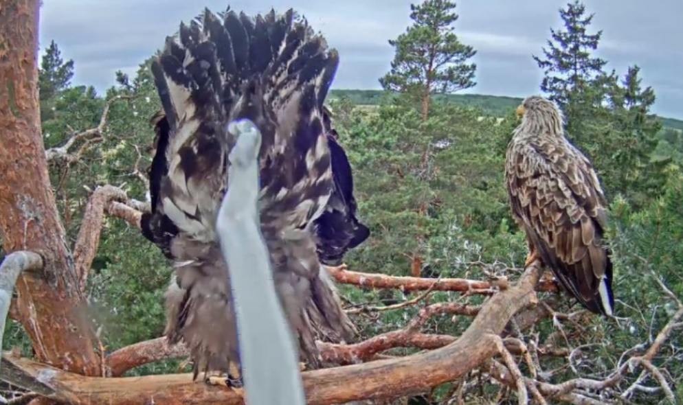 Wszystkie problemy populacji orłów były i są związane z ludźmi. Tutaj w przypadku Suvi i Suleva problem tkwi w słabych drzewach dostępnych do budowy gniazda (drzewa gniazdowe również powinny znajdować się w odpowiednich miejscach). Oczywiście możemy budować wszędzie sztuczne gniazda i pewnie nie spadną one. Ale czy chcemy bieliki z gospodarstw rolnych? Dlaczego więc instalowałem na gniazdach sztuczne gałęzie, połączone za pomocą śrub i gwoździ? To dlatego, że należę do ludzkiej populacji, prawdopodobnie ... i podświadomie chcę zrobić coś dobrego dla natury, plus instaluję kamery na gniazdach - aby umożliwić obserwowanie sezonu lęgowego. Jak więc znaleźć szczęśliwy kompromis pomiędzy warunkami naturalnymi, które można oglądać, a możliwością oglądania. Nie ma idealnych rzeczy, które robimy, a widząc różnicę między planami a rzeczywistością, wszyscy jesteśmy znacznie mądrzejsi. Teraz widzę, że gniazdo nie jest wcale solidne, ale nie było to łatwe do zobaczenia w zimie. Mogłem dodać dwie duże gałęzie na przedniej i tylnej krawędzi gniazda. W ubiegłym sezonie nie było żadnego lęgu w tym gnieździe, więc jeśli ta młoda się uratuje, jest to wielki sukces. Nie wiem, dlaczego ta para bielików zasiedliła gniazdo dokładnie w tym miejscu? Prawdopodobnie nie ma wiele opcji - aby wyrosła silna sosna, która uniosłaby gniazdo bielika, potrzeba setek lat ... W ciągu ostatnich stuleci takie drzewa były systematycznie ścięte i widzimy rezultat bezpośrednio przed kamerą. Mimo to populacja bielika ogólnie dobrze sobie radzi i w dłuższej perspektywie może swobodnie znaleźć drzewa gniazdowe przynajmniej na obszarach chronionych, poza konwencjonalnym zarządzaniem przez człowieka