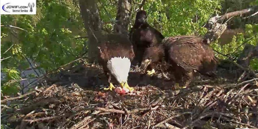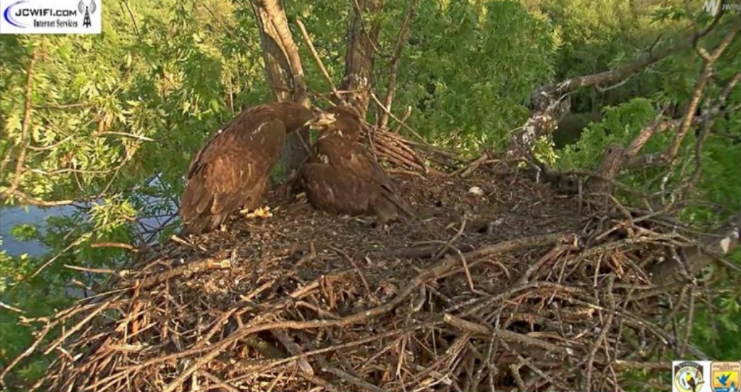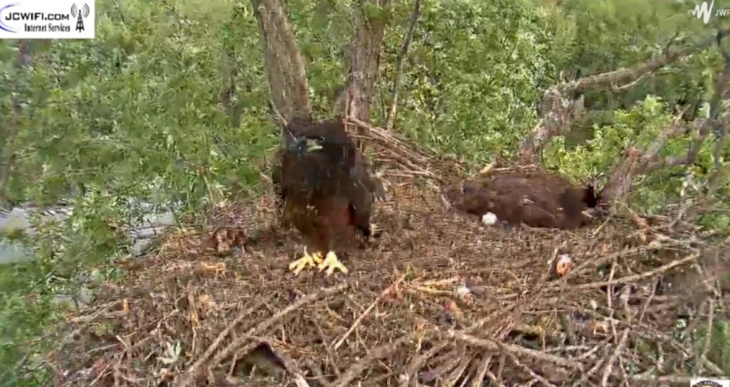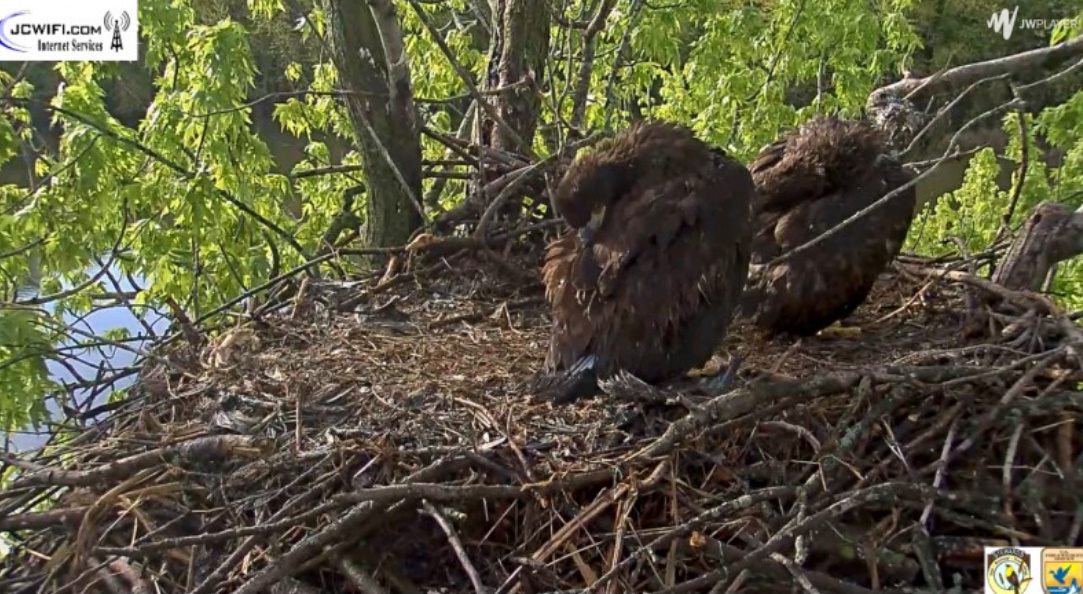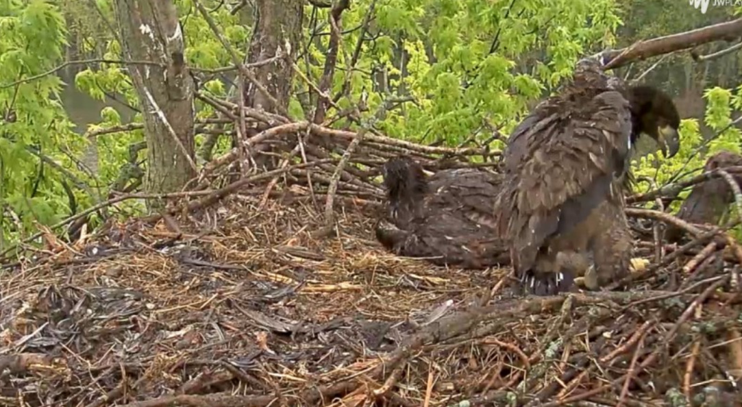 Na podglądzie coraz częściej widzimy młode samiutkie w gnieździe, ale spokojnie opiekunowie gniazda uspokajają nas, że zawsze jeden z tatuśków czuwa na gałęzi, tyle że poza okiem kamery :p