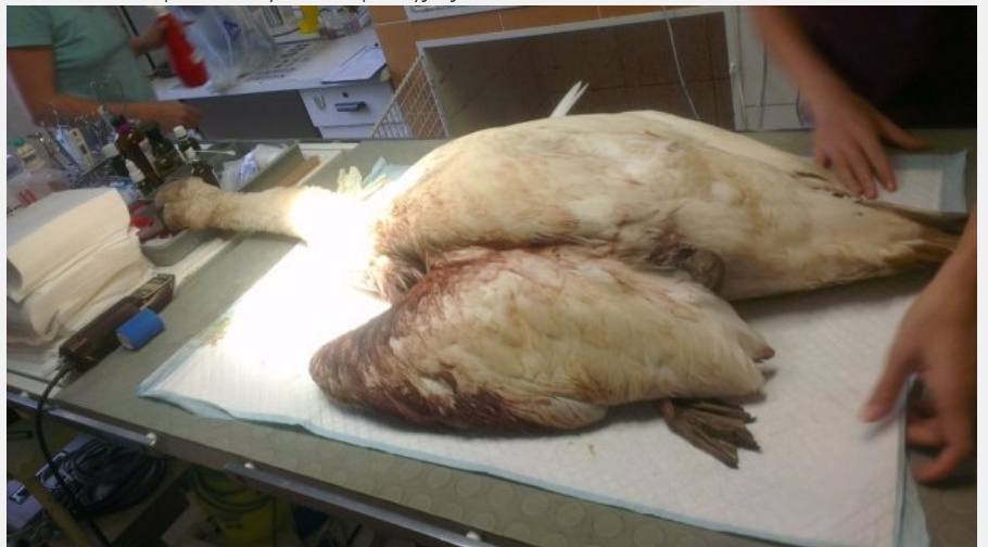 Ze względu na masowe uszkodzenia naczyń krwionośnych , kości i okolic mięśni, trzeba było dokonać amputacji skrzydła. Tak jest, niestety w większości złamań u ptaków po zderzeniach z liniami energetycznymi.