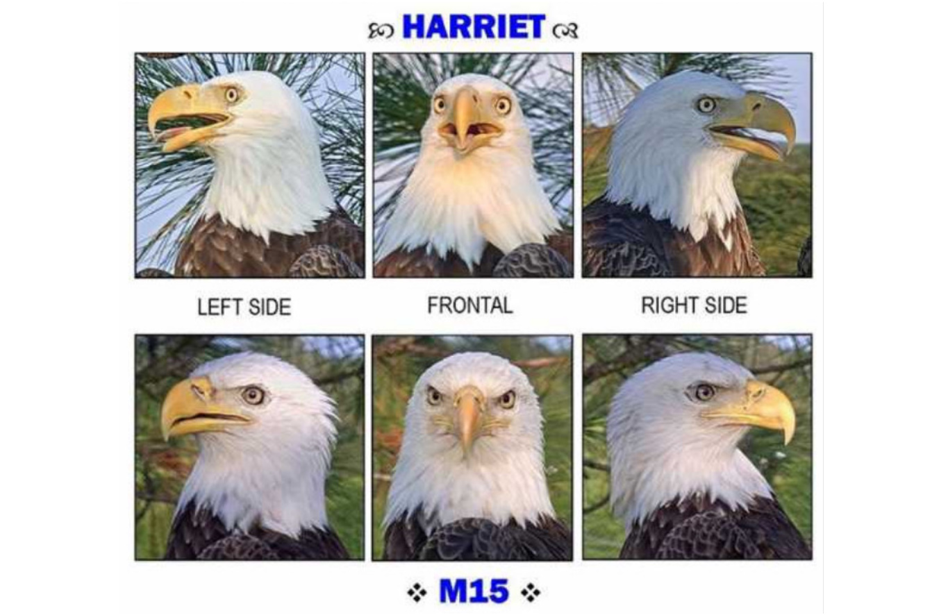 Bieliki amerykańskie (Haliaeetus leucocephalus) o imionach Harriet i Ozzie.