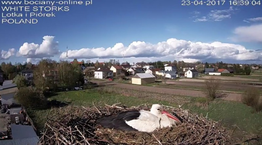 I jeszcze jakiś spóźniony bocian chce ukraść Piórkom dom.