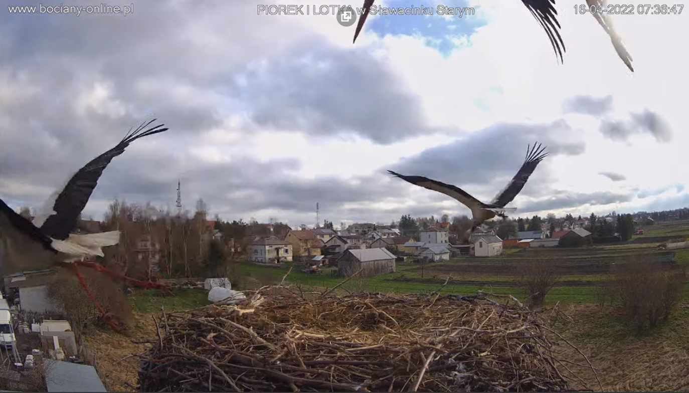 2 maja - dołaczyła samica - zgodnie z tradycją gniazda para ma imiona Lotka I Piórek