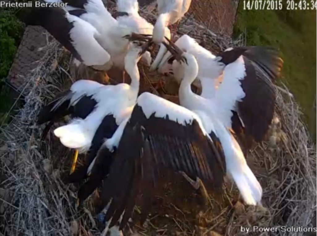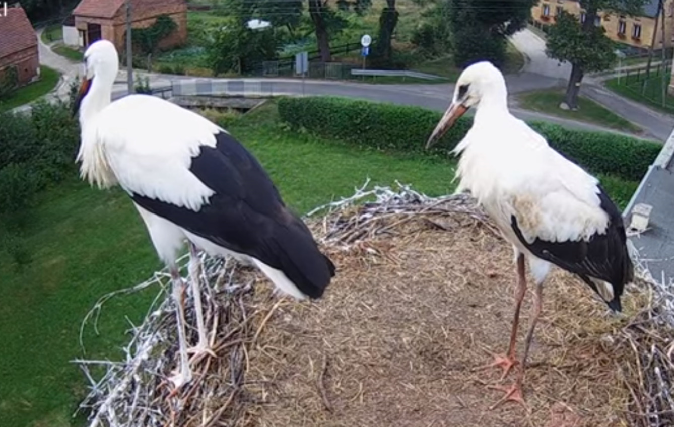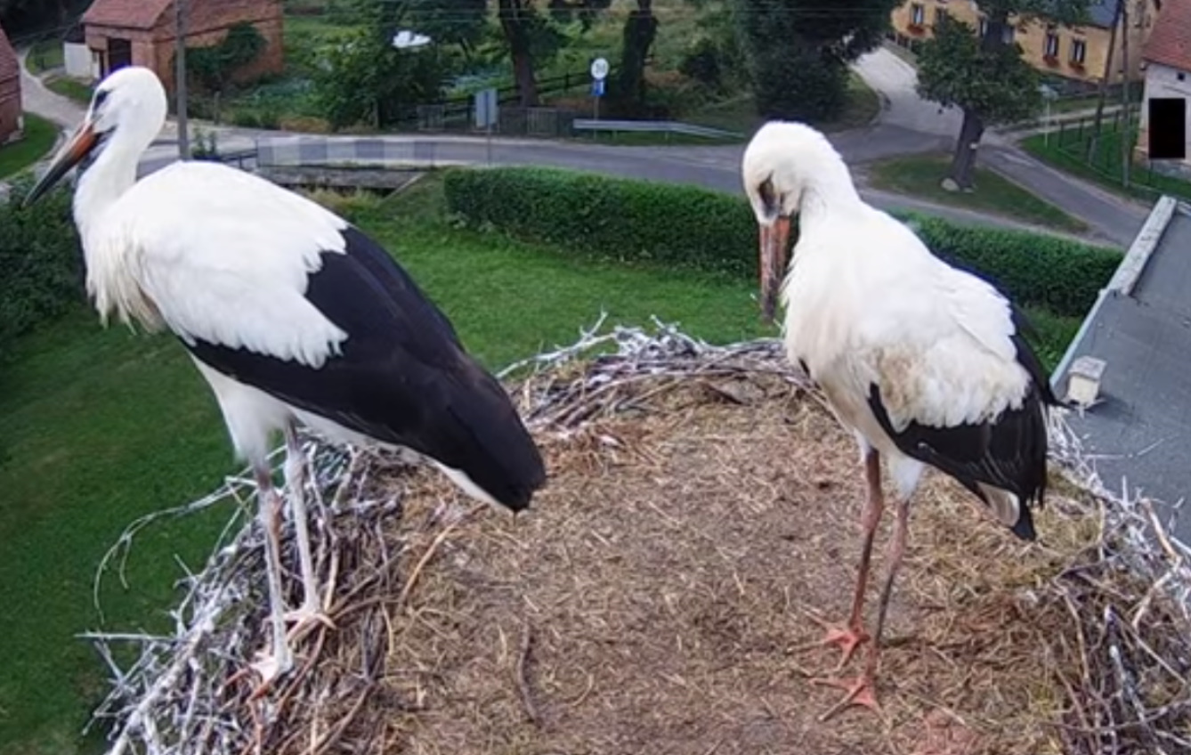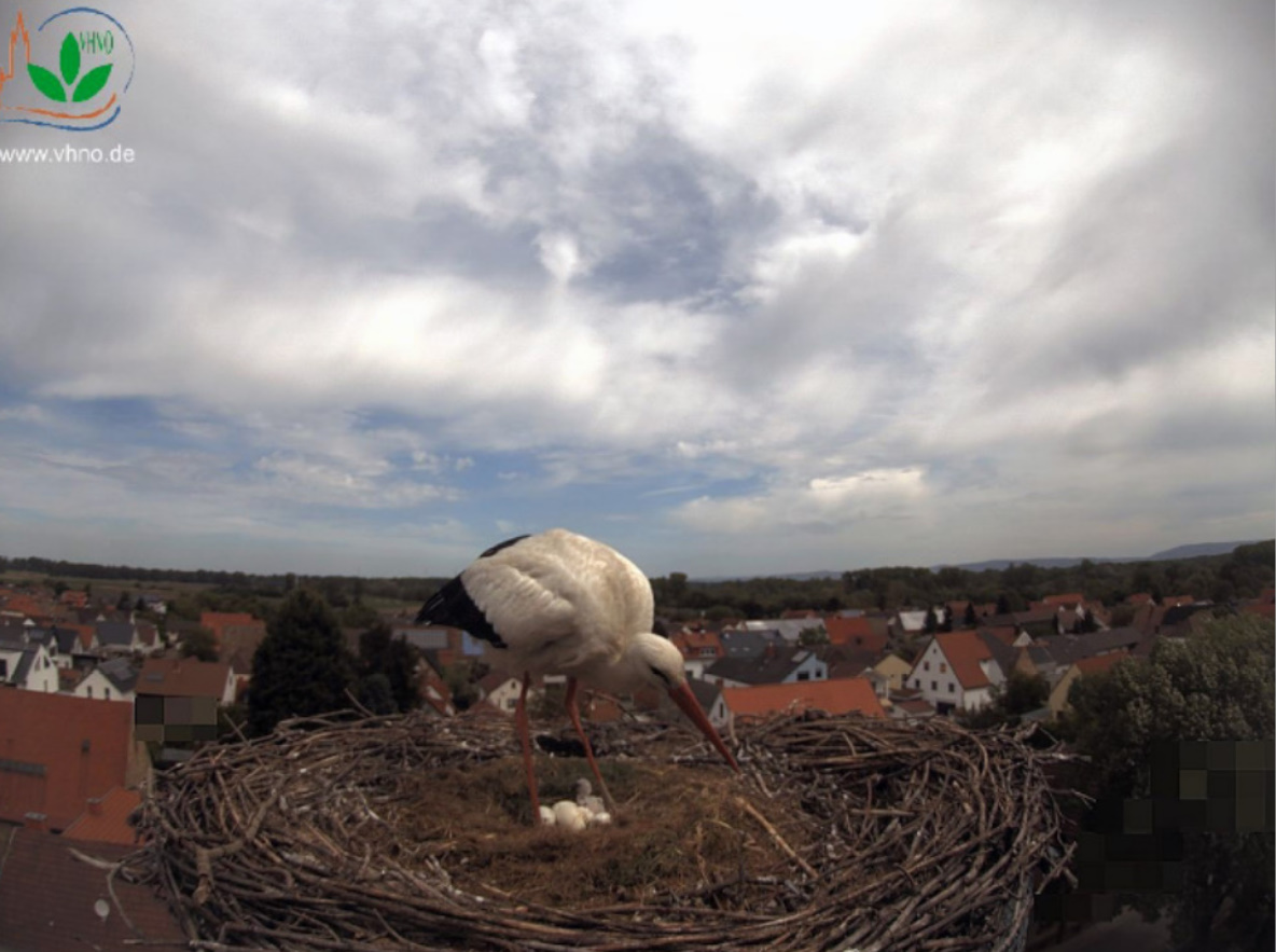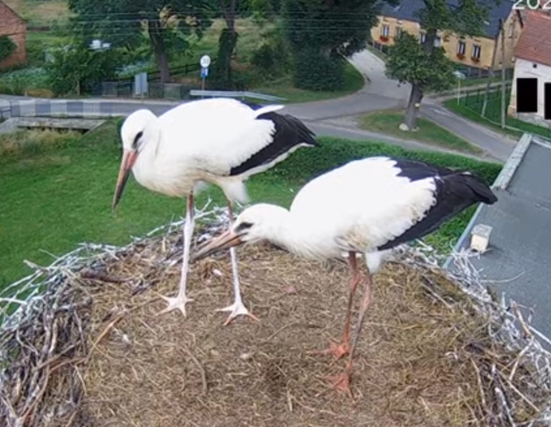 Bocian nie może usiąść i zastąpić jego partnerki Rosi podczas wylęgu w gnieździe. Rosi musi regularnie dla siebie szukać żywności. W tym czasie jaja są chłodzone.